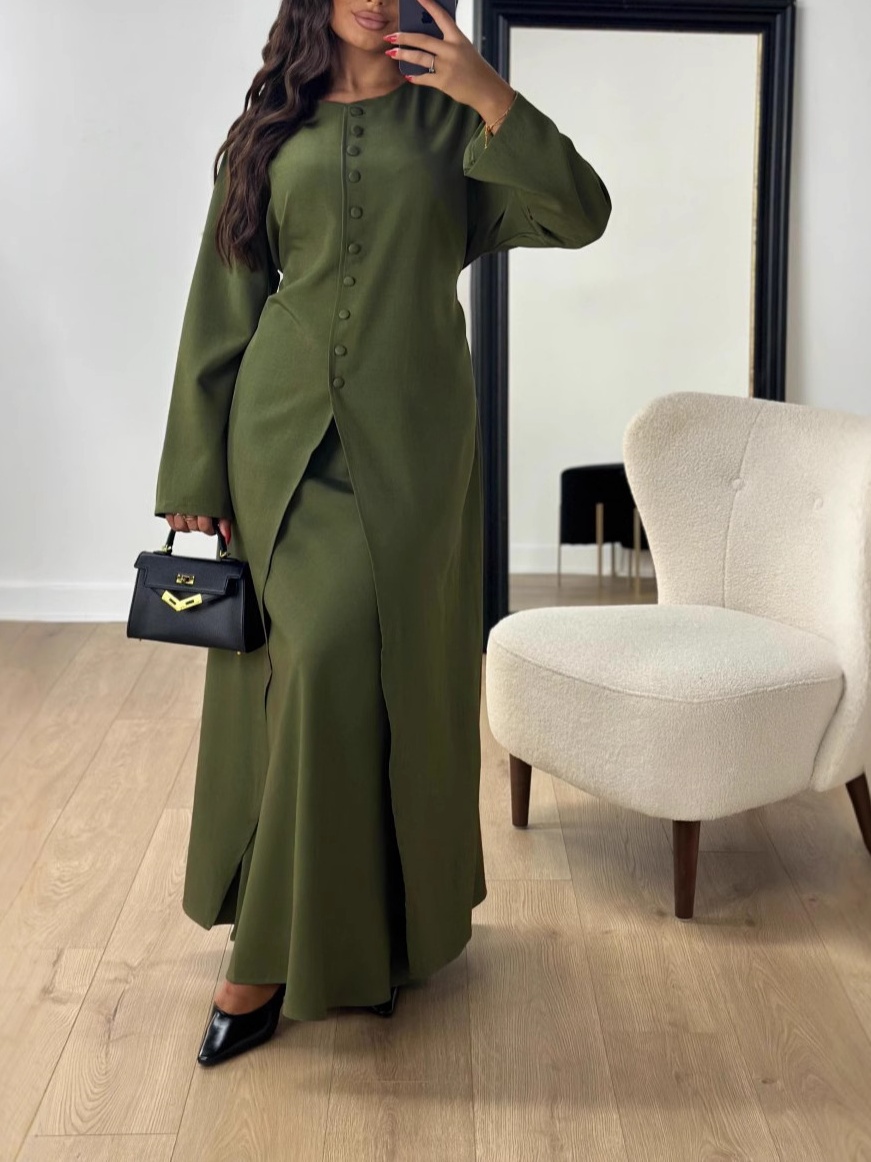 Satin Button Two-Piece Evening Dress Set