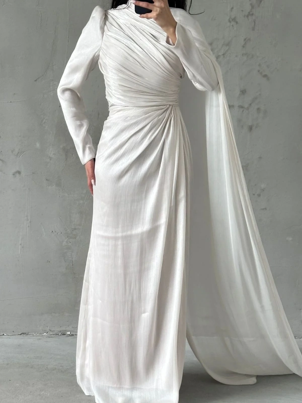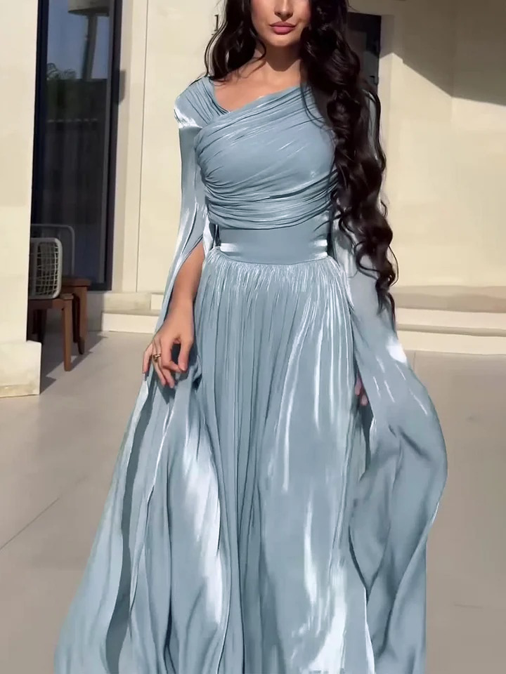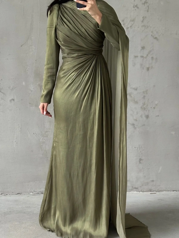 Draped Neckline Long Sleeves Maxi Dress