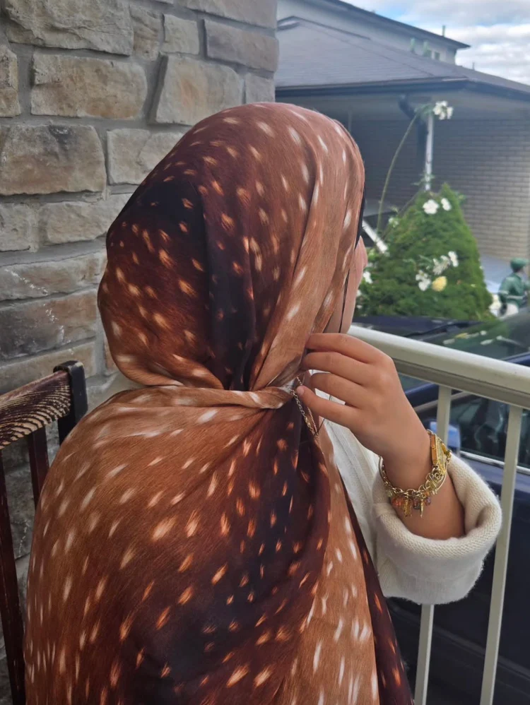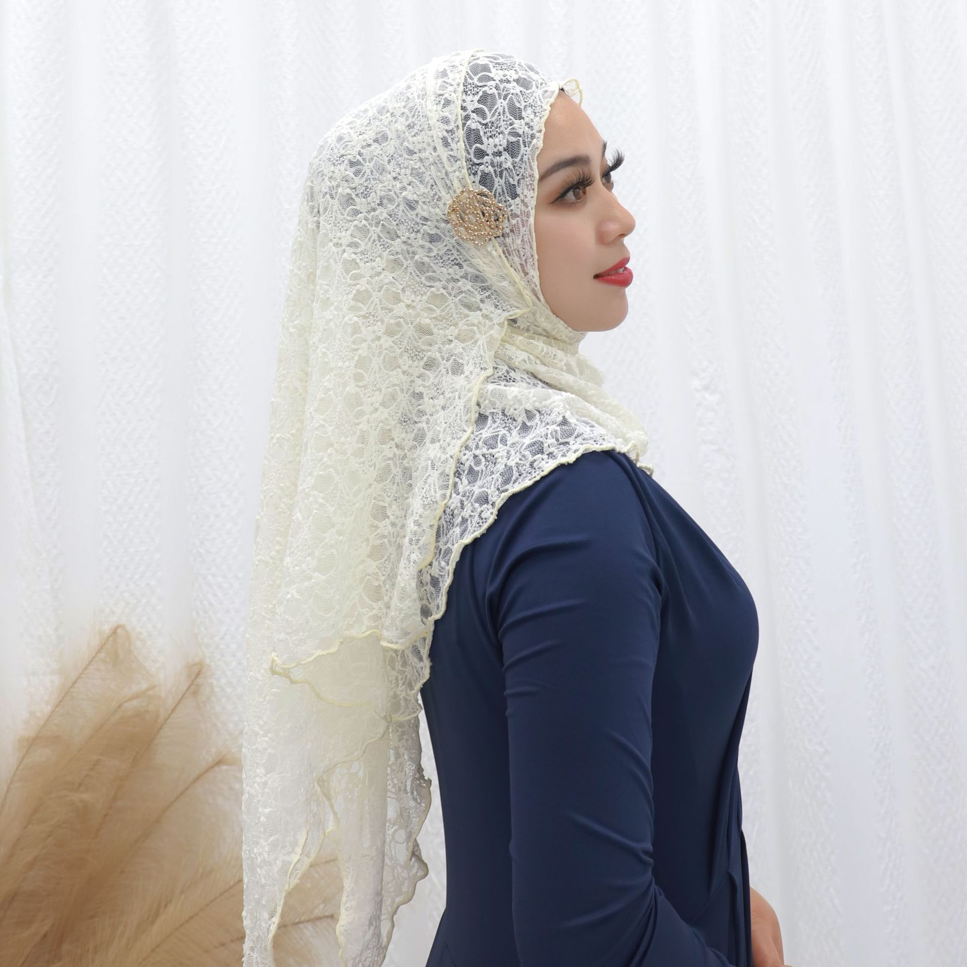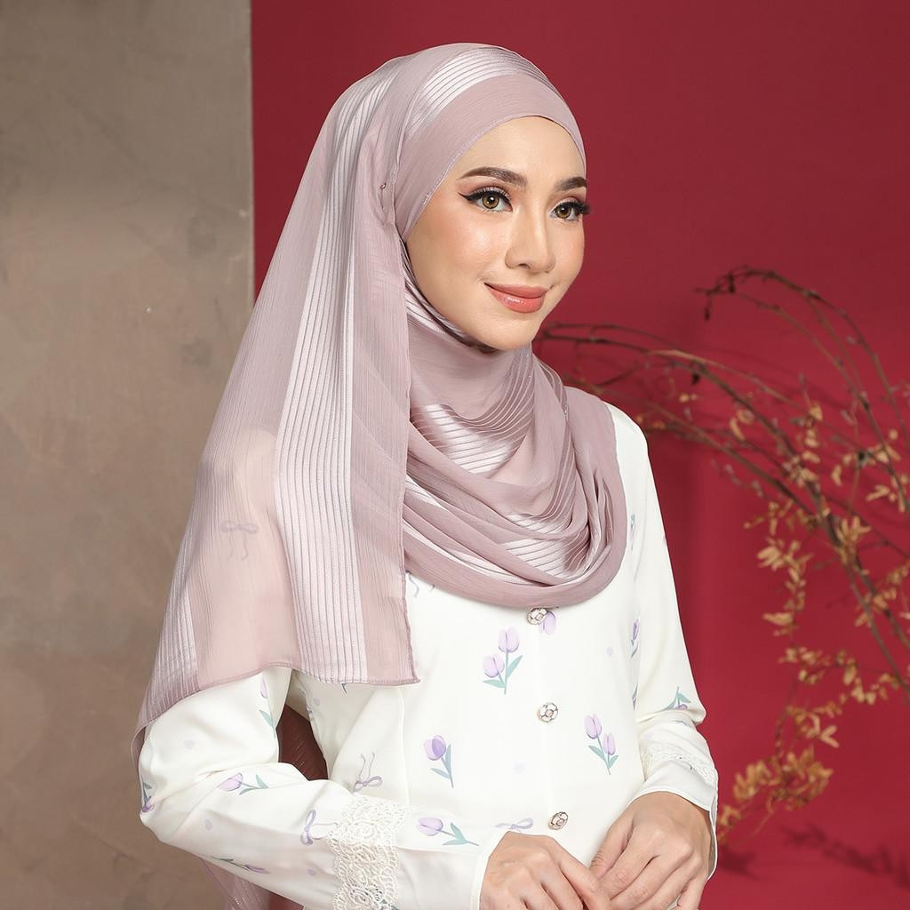 Wide-striped Rhinestone Embellished Chiffon Hijab