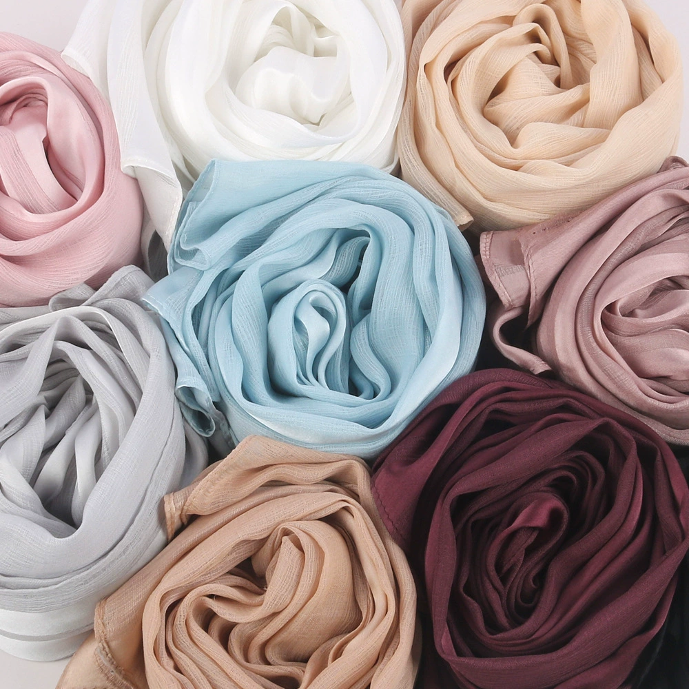 Solid Color Natural Wrinkle Soft Gauze Scarf