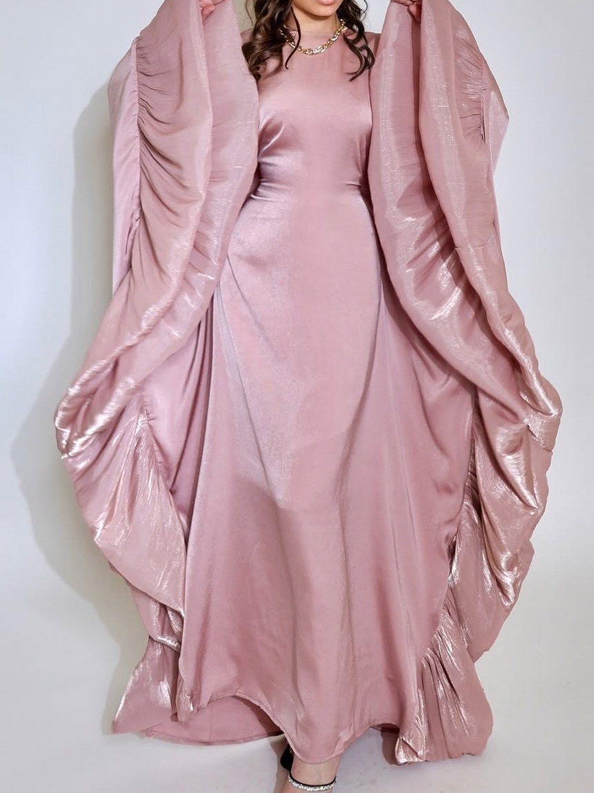 Waistband Satin Batwing Sleeves Abaya