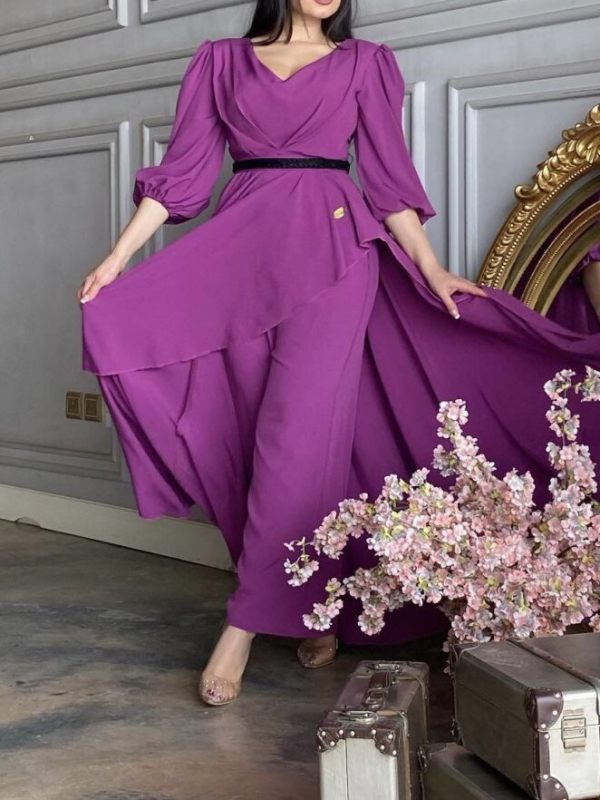 Long Puff Sleeves Elastic Waist Jumpsuit