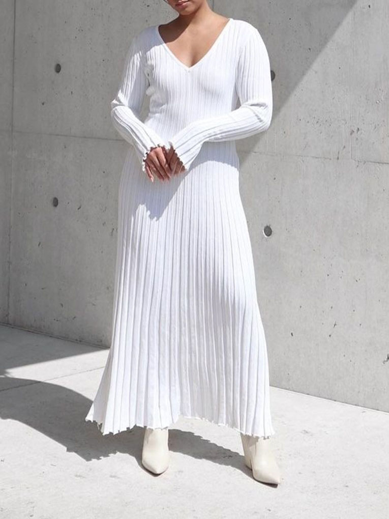 Solid Color Simple Knit Slim Fit Maxi Dress