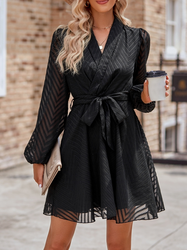 Lapel Collar V-Neck Sexy See-through Waist Dress