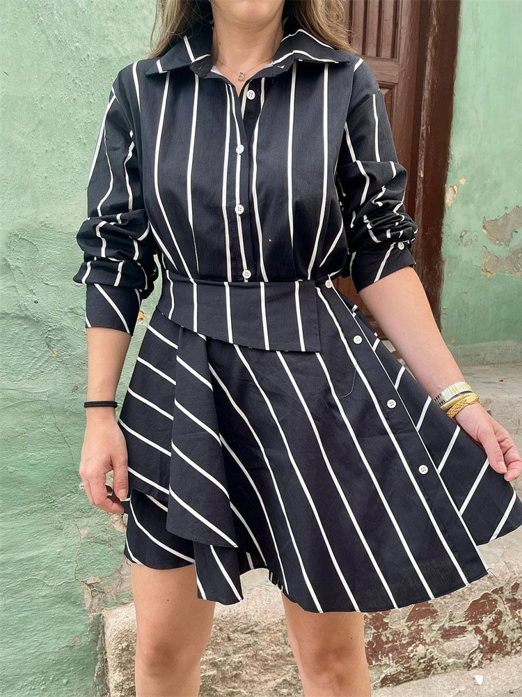 Geometry and Floral Graphics V-Neck Waist Dress Set