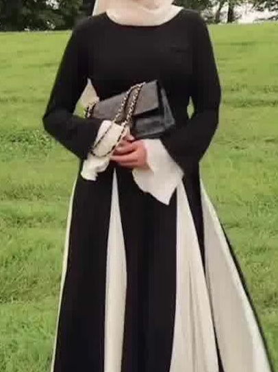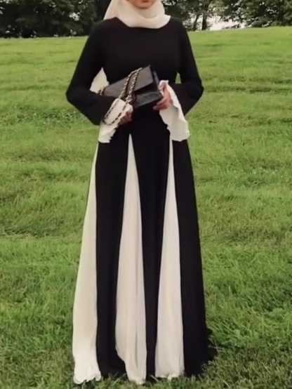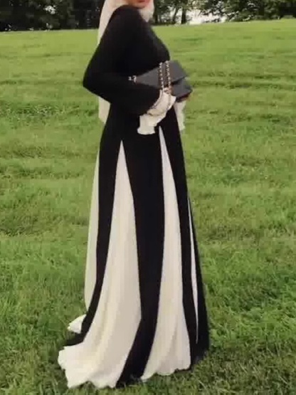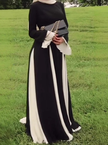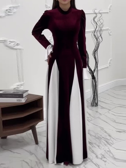 Round Neck Fashion Color Collision Patchwork Maxi Dress-Clearance