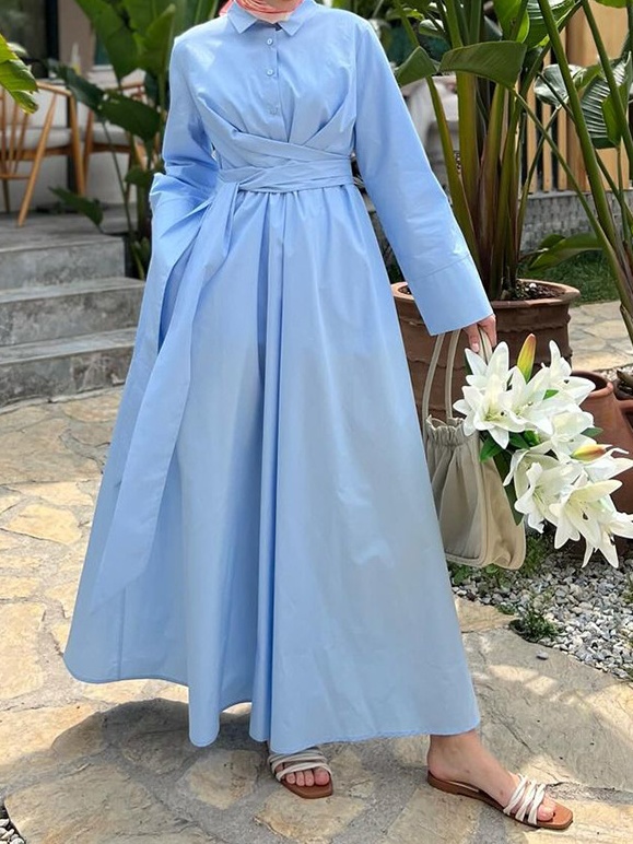 Solid Color Wide Sleeves Dress