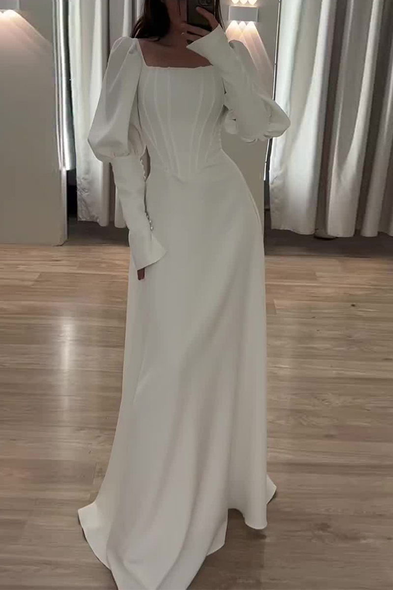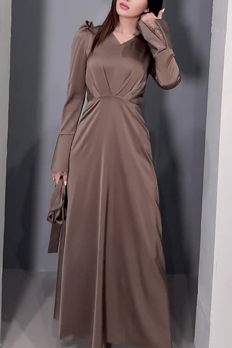 Palace Style Low Neck Long Sleeve Maxi Dress