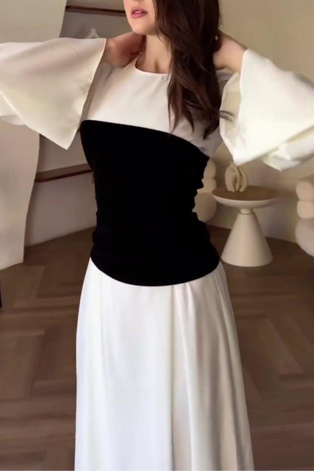 Black and White Spliced Waist Dress