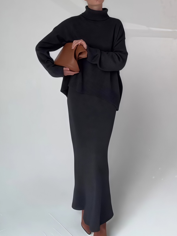 2-Piece High-Neck Top and Fitted A-Line Skirt Set
