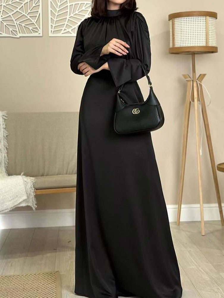 Temperament Solid Color Fared Sleeve Waist Maxi Dress-Clearance