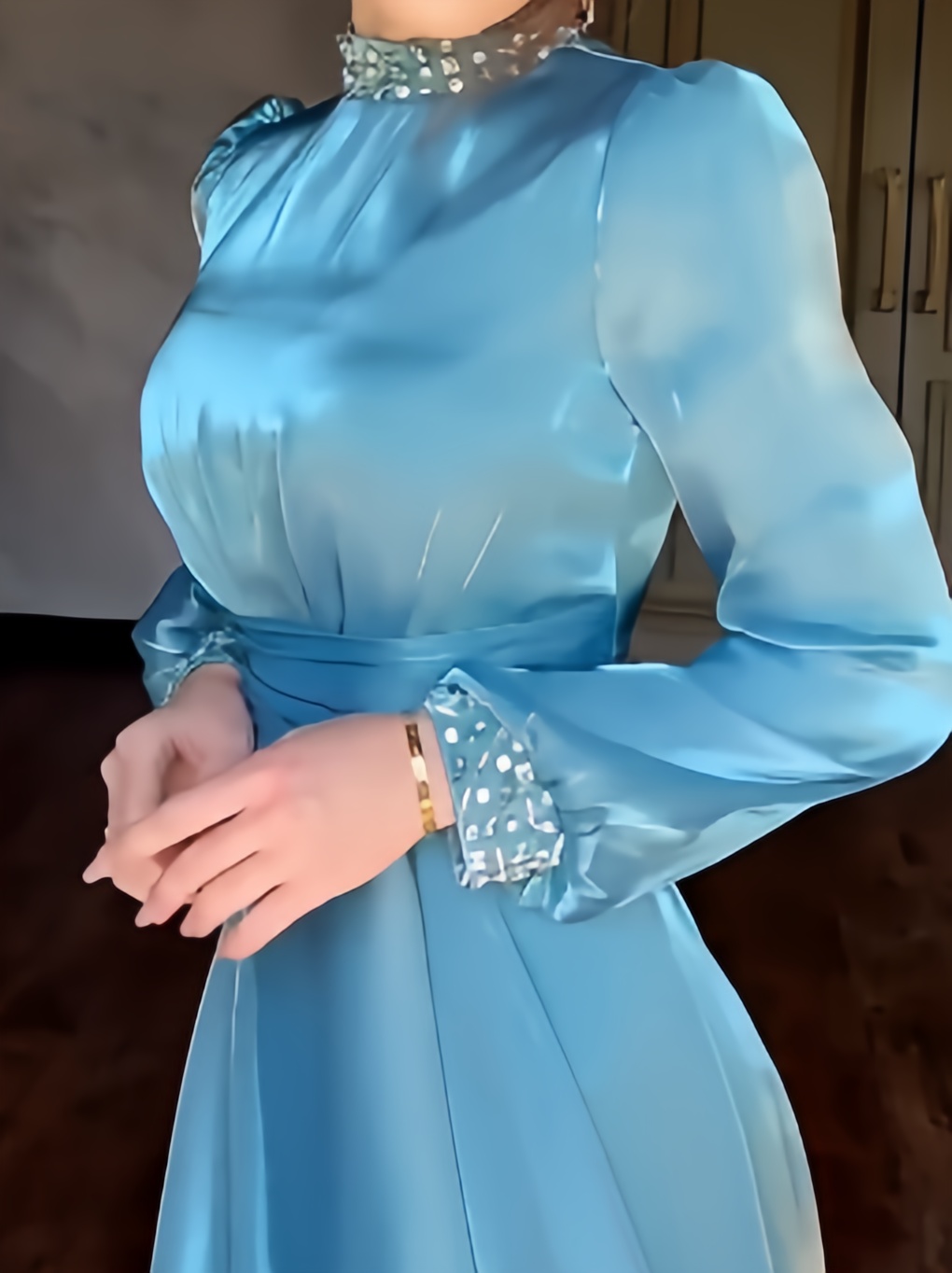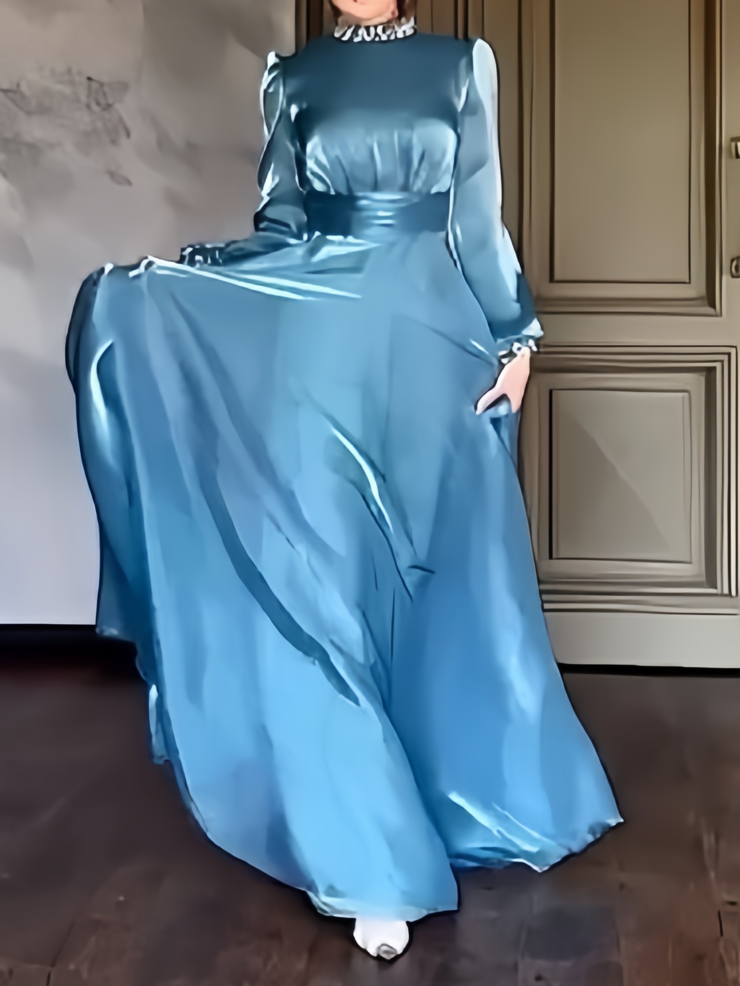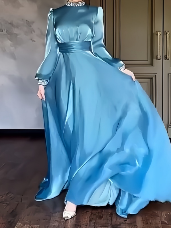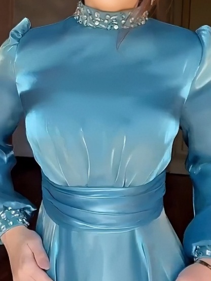 Formal Dinner: For high-end evenings, this dress's slim fit, luxurious satin material, and delicate neckline and cuffs will create a sophisticated and elegant look, making the wearer the centre of attention and perfectly suiting the formal atmosphere of a dinner. Weddings: As a wedding guest dress, its elegant design and refreshing blue hue won't steal the show from the bride, while showcasing her dedication to the wedding and her taste. As a toast dress, it can also showcase the bride's unique charm.