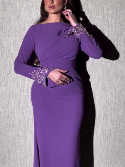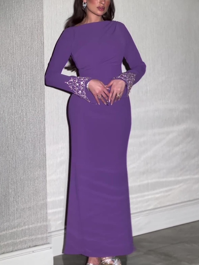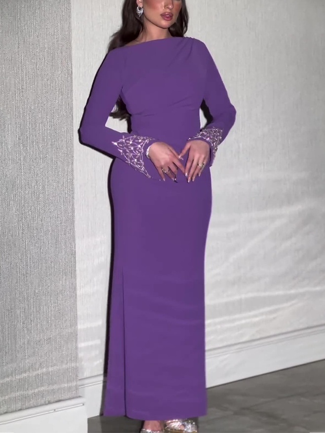 Solid Color Long Sleeve Dress-Clearance