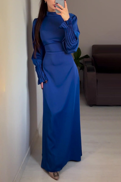 Round neck, long sleeves, pleated design, stretchy fabric, soft and comfortable feel.