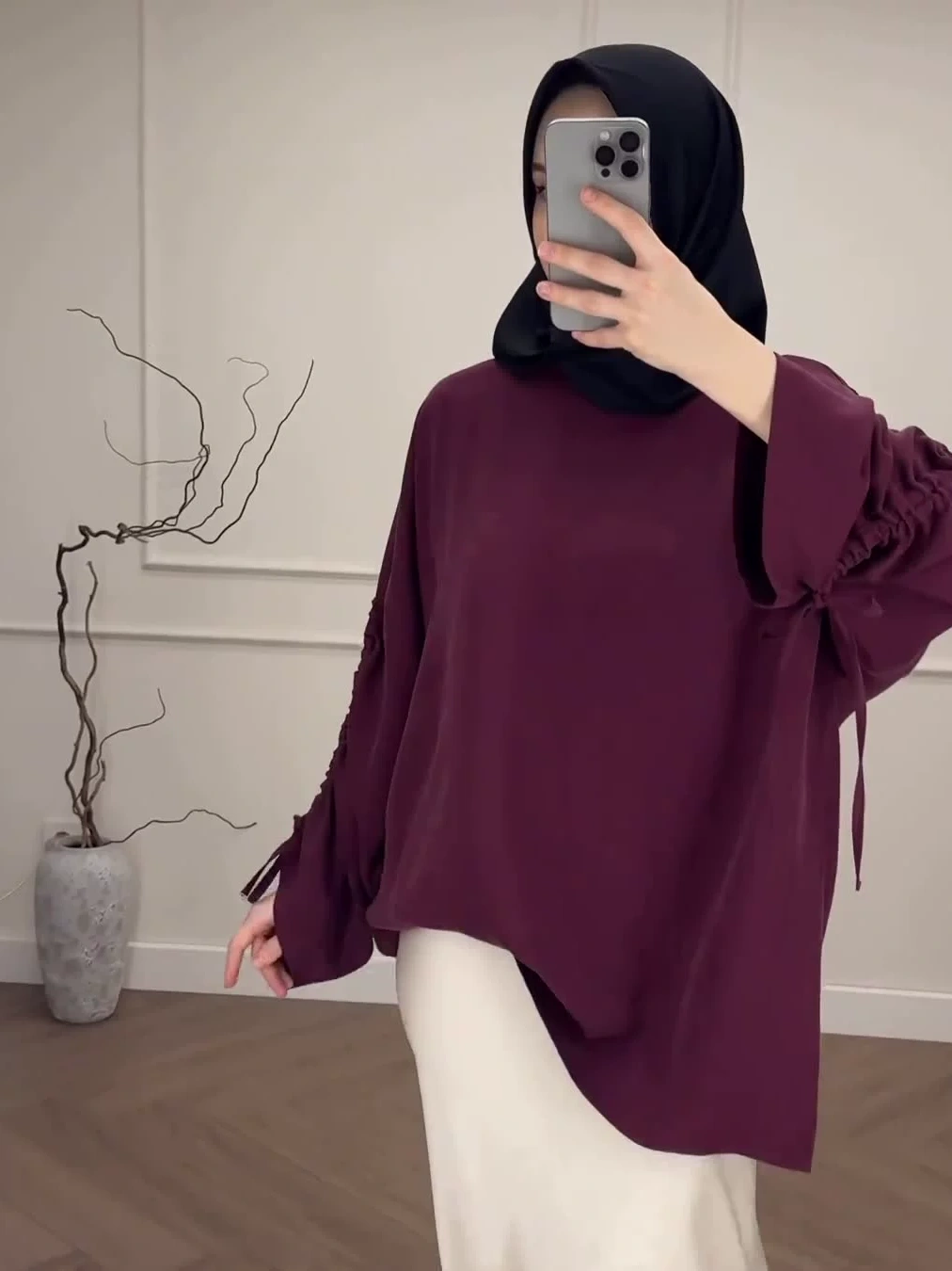 2pcs Loose Long Sleeve Top Half Skirt Set