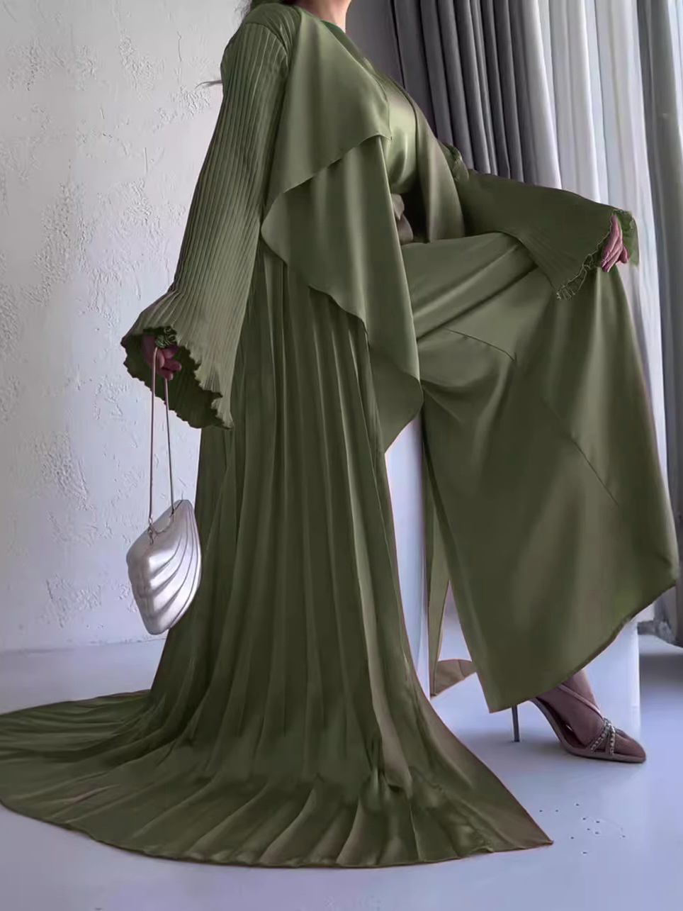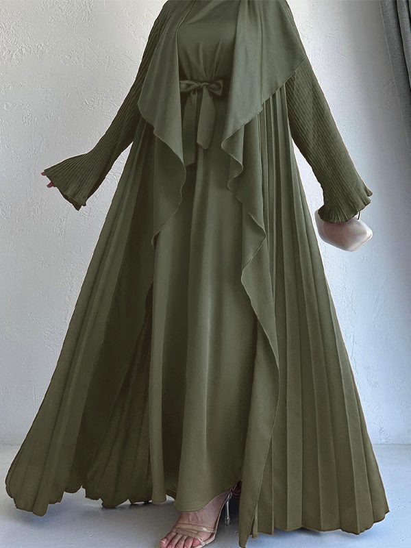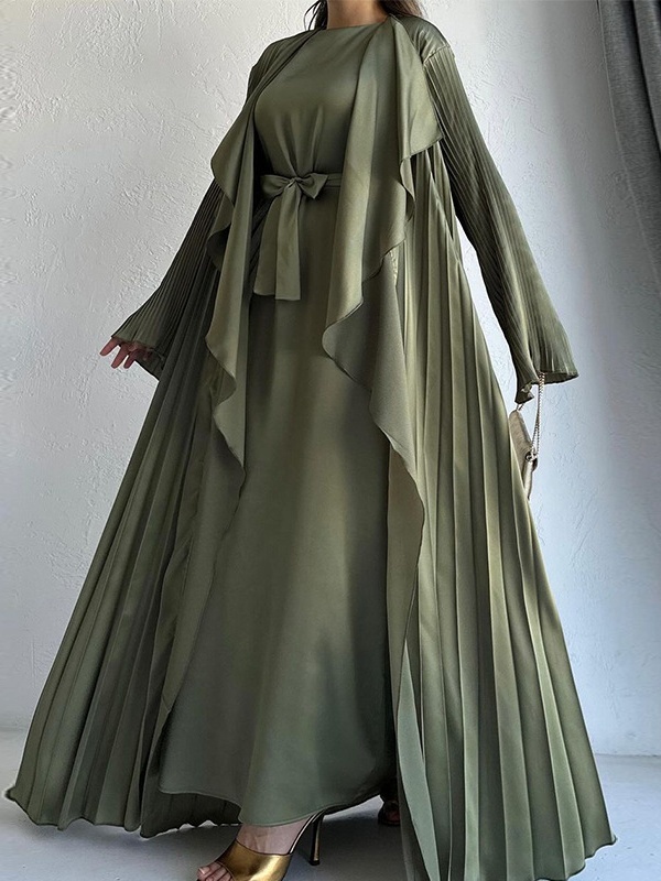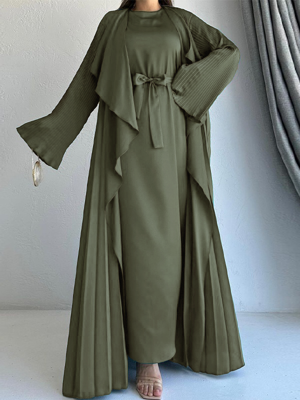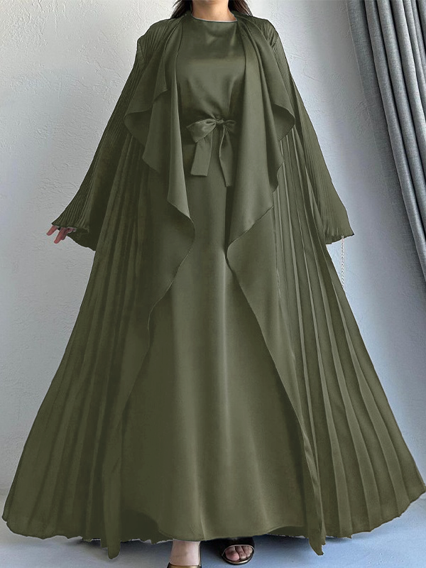 2pcs Pleated Waisted Elegant Long Skirt Set