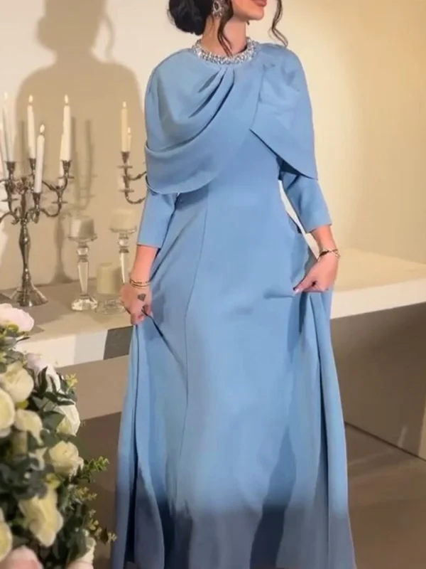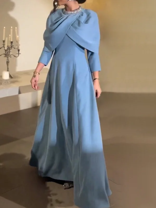 Beaded Diamond Neckline Shawl Maxi Dress