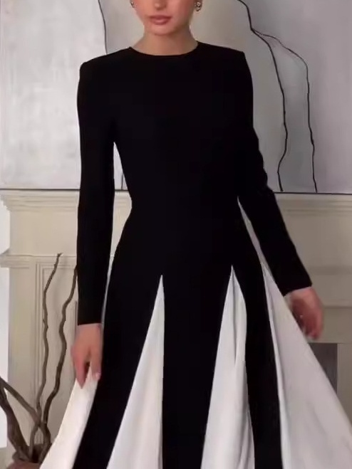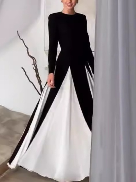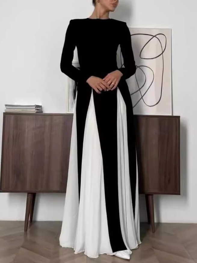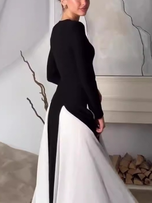 Contrast Color Round Neck Patchwork Maxi Dress-Clearance