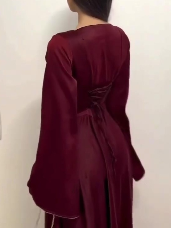 Art Exhibitions/Theater Performances: At cultural and artistic events like classical oil painting exhibitions and opera and ballet performances, the dress's retro elegance perfectly complements the artistic atmosphere. The velvet, square neckline, and flared sleeves feel like an extension of the art installation, while the pearl necklace echoes the exquisiteness of the artwork. Wearing this dress to exhibitions and performances captures the aesthetic of art lovers and allows you to easily immerse yourself in the artistic context.