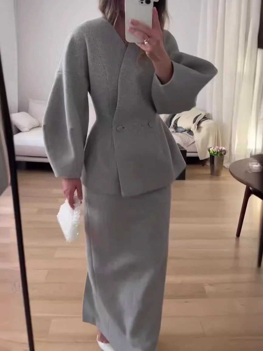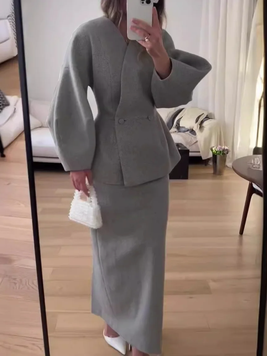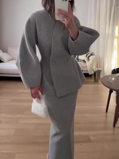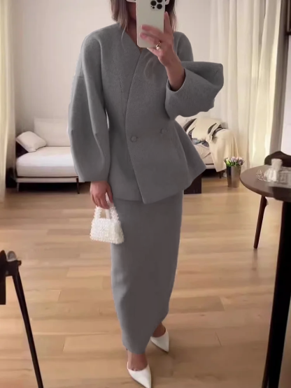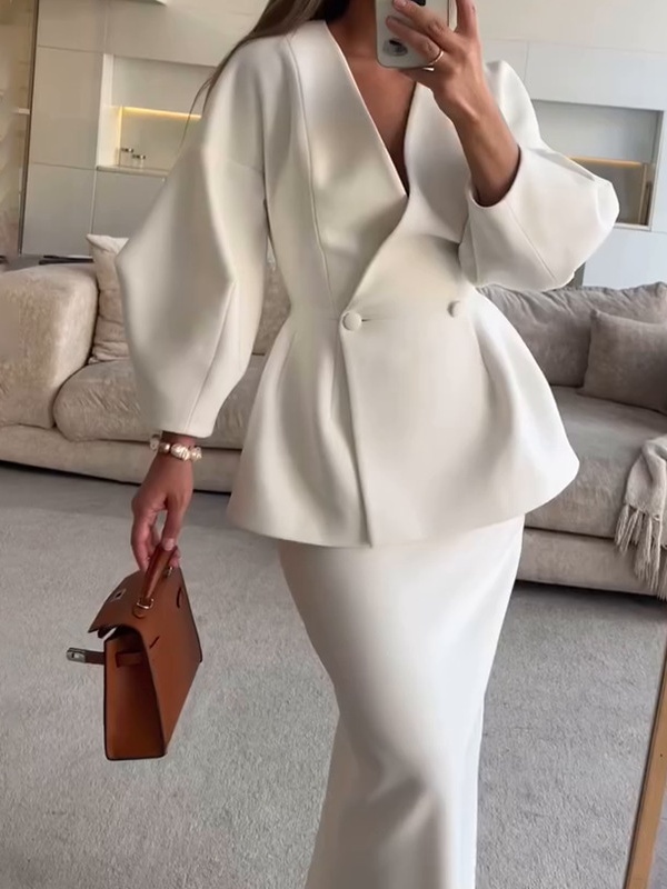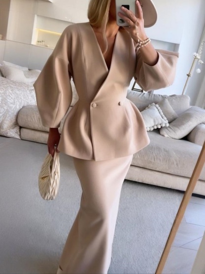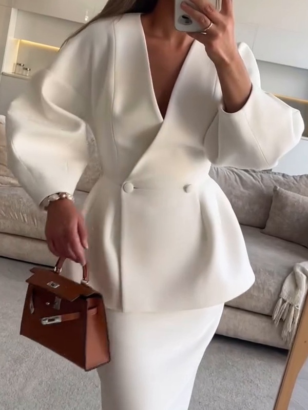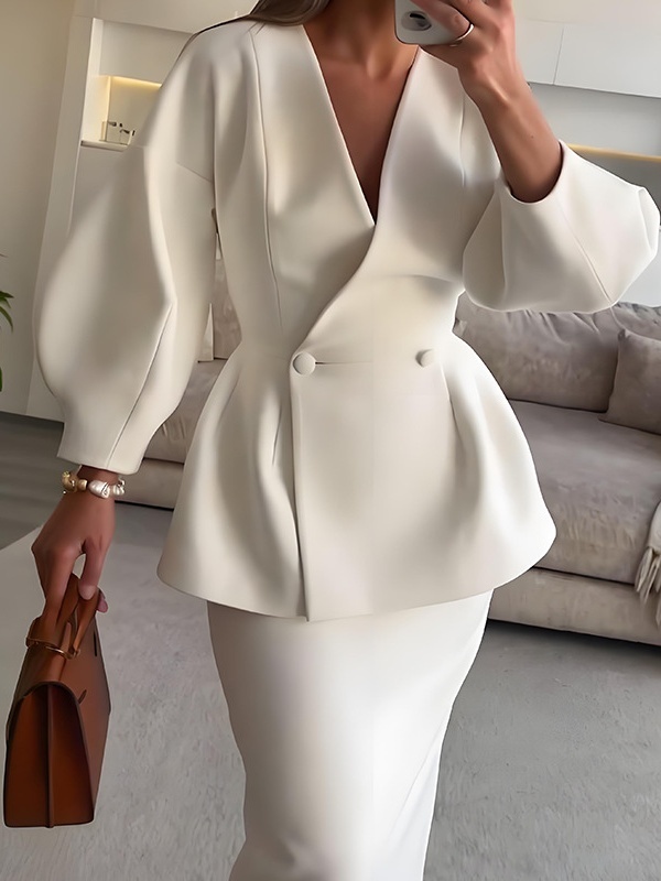 Fashionable Solid Color Layered Slim Elegant Dress Set
