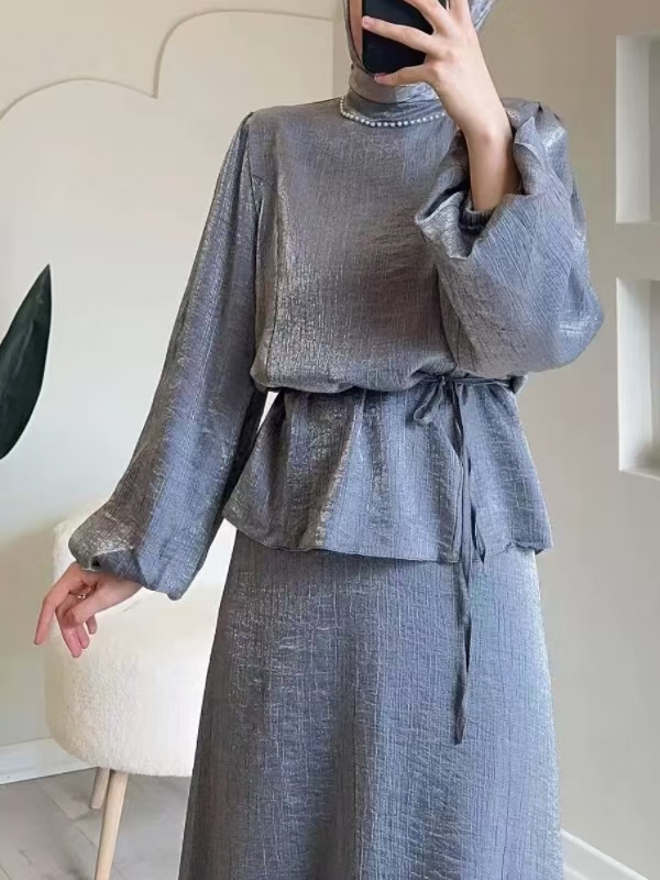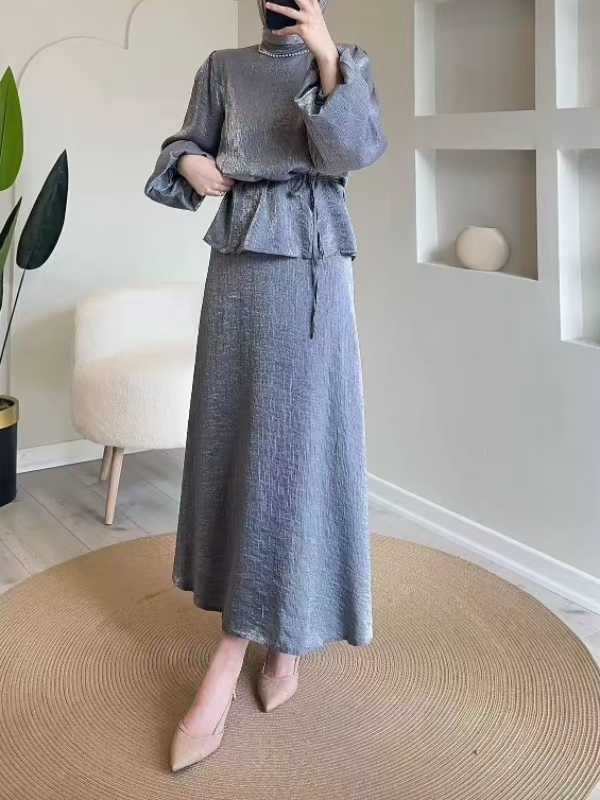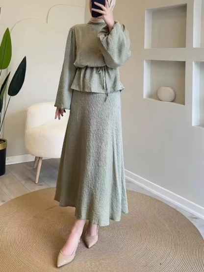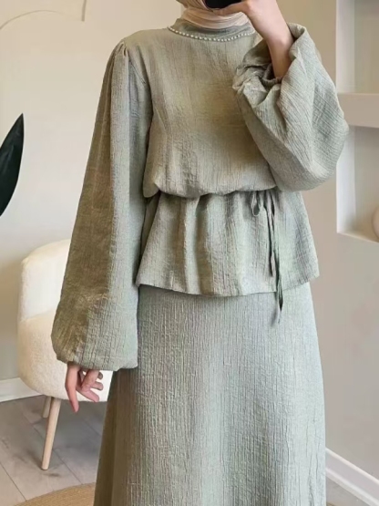 Generous Solid Color Waisted Top and Skirt Set