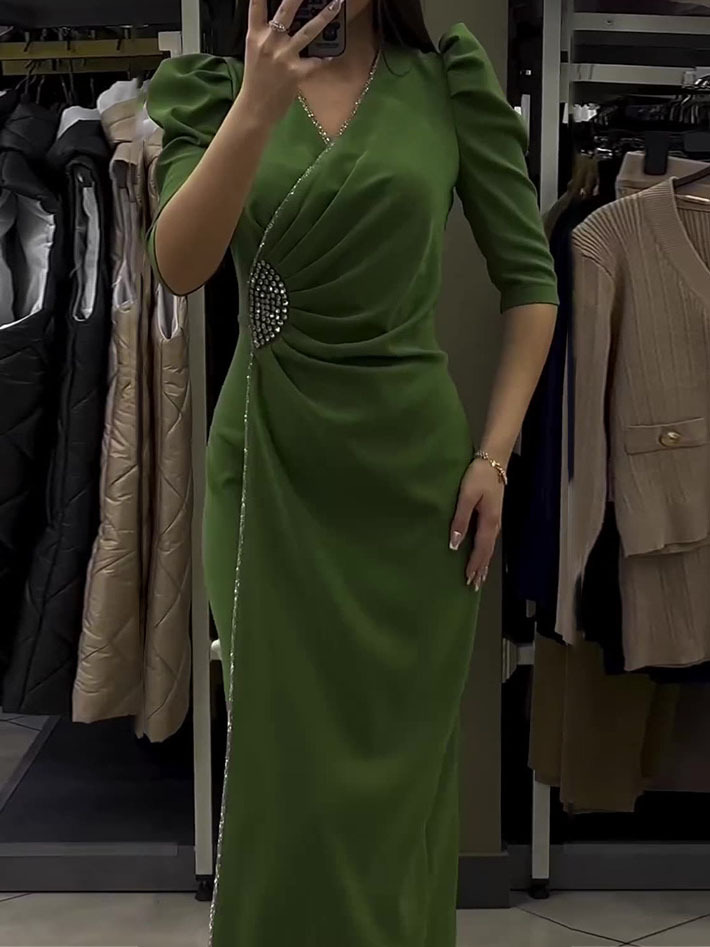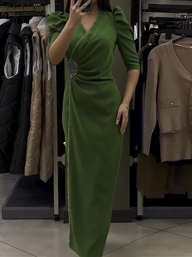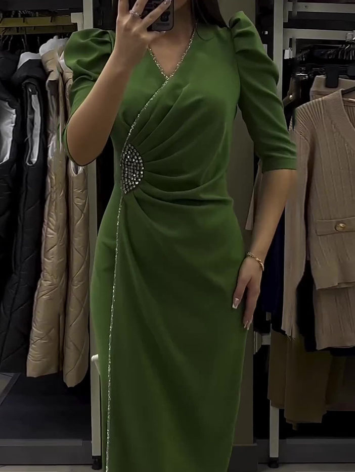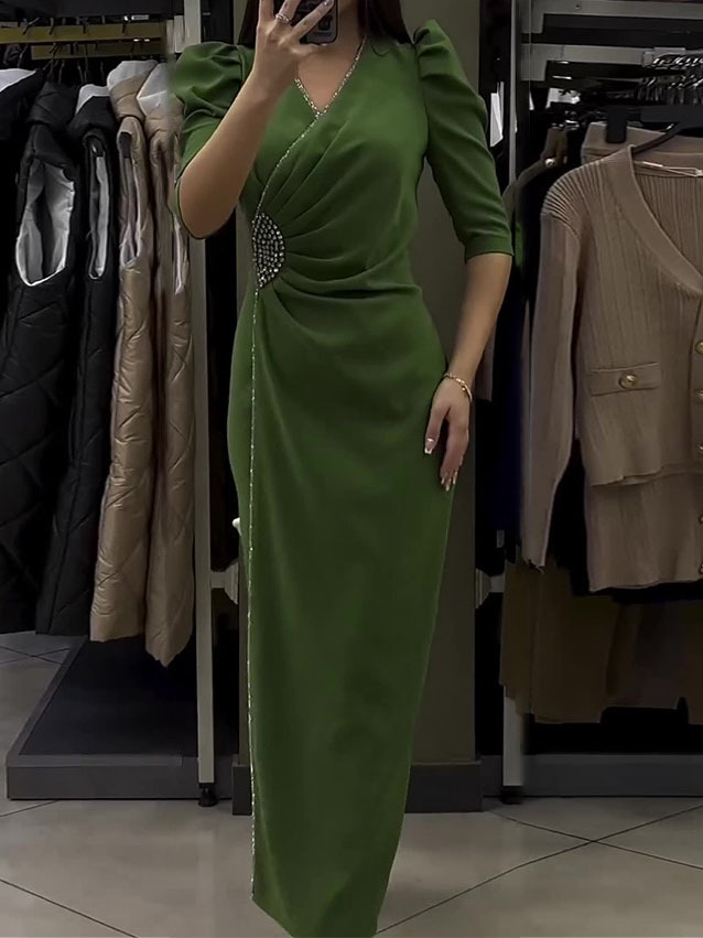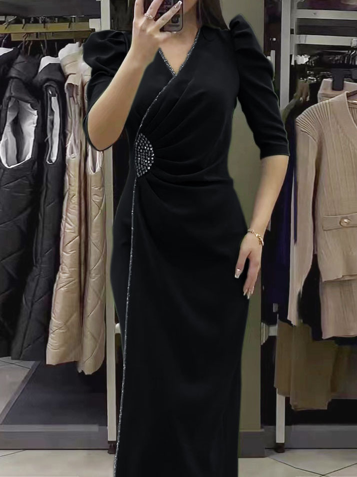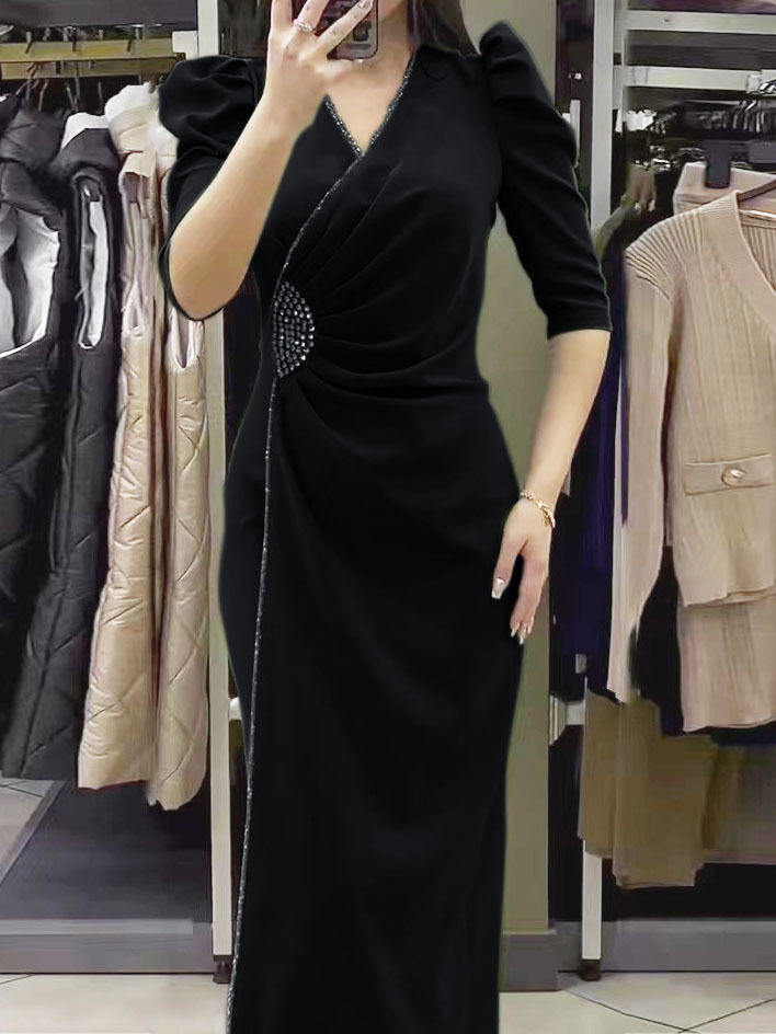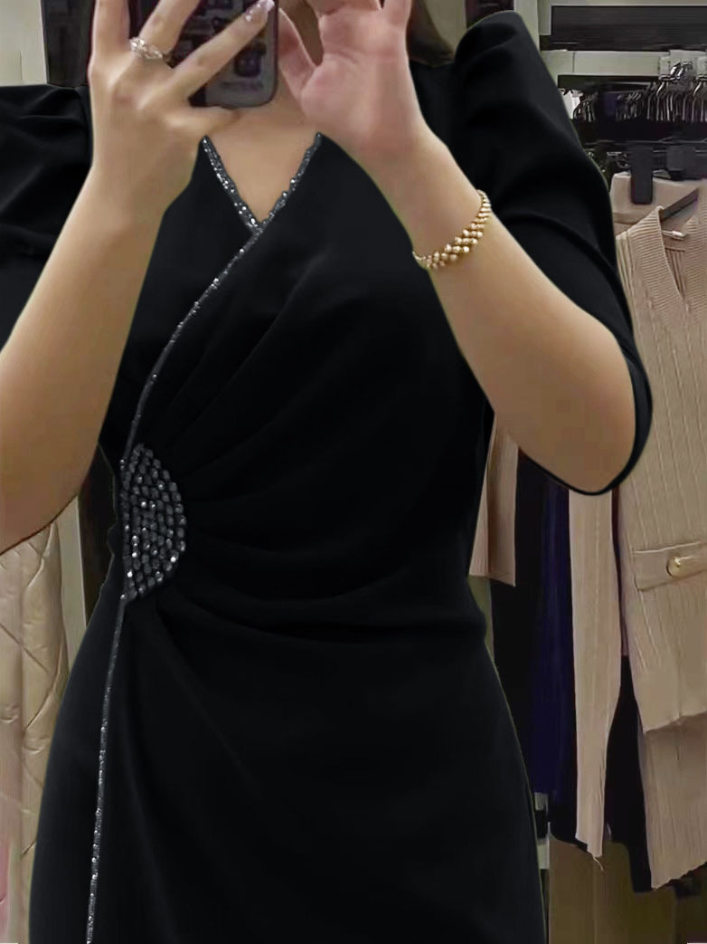 Half Sleeve Pearls Decor Dress