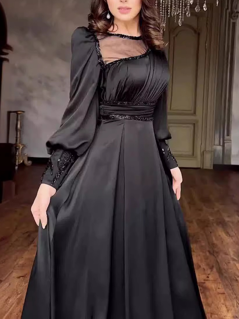 Anniversary/Date: Perfect for anniversary dinners and romantic dates in autumn and winter, a black dress exudes a mysterious and solemn aura. The velvet and mesh materials create a formal, elegant look, while the cinched waist and sequined embellishments enhance the feminine charm. Wearing this dress for special occasions offers both everyday comfort and a sense of ceremony, making dates and anniversaries more memorable. It's perfect for romantic occasions in autumn and winter.