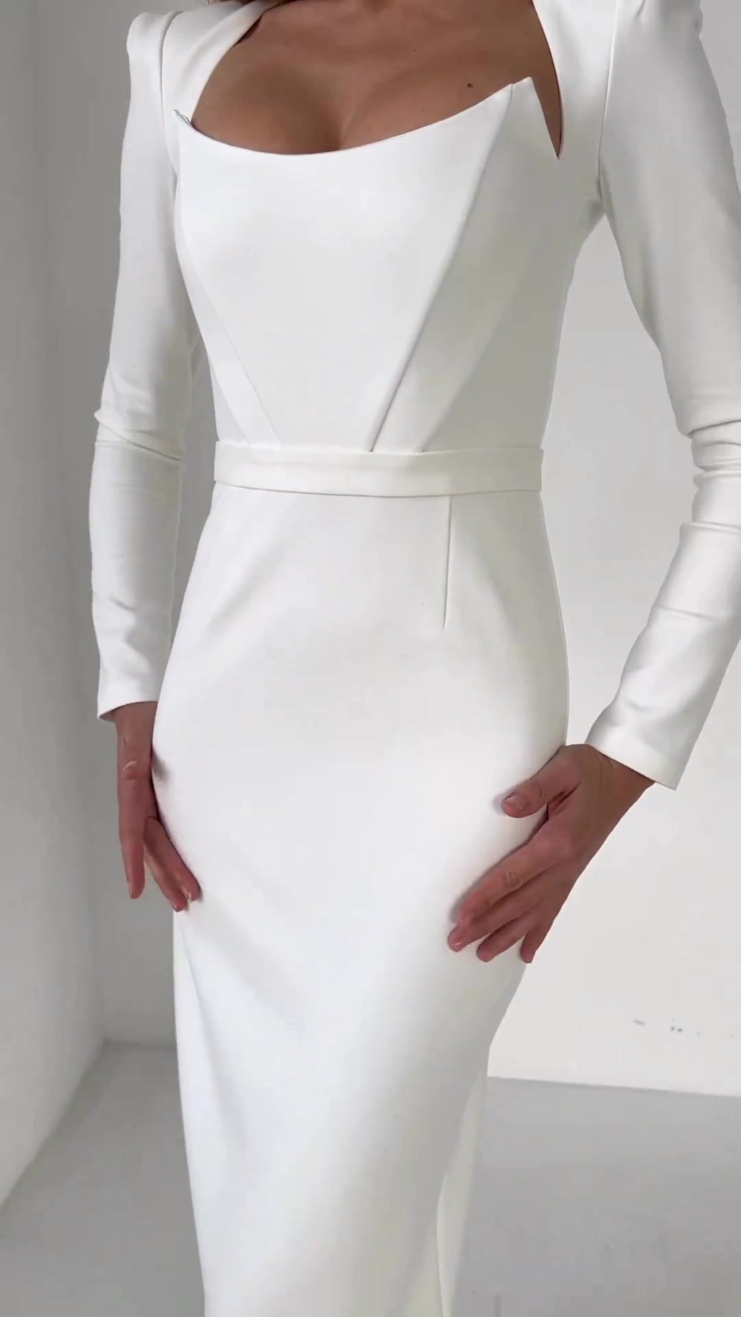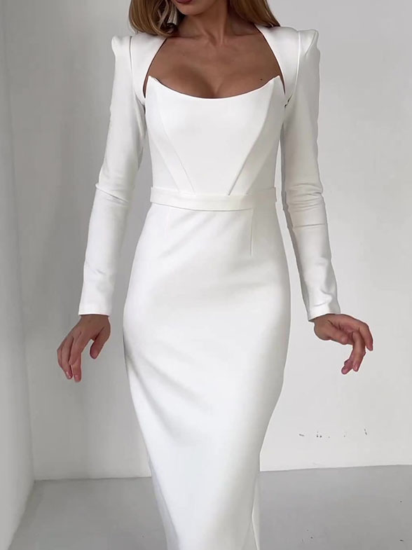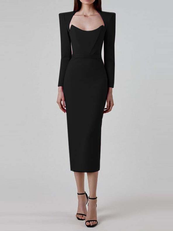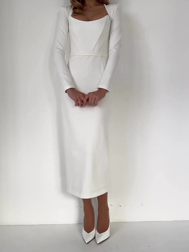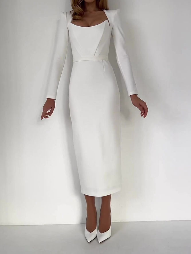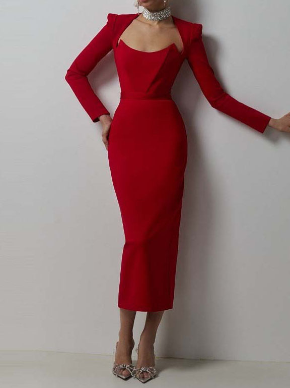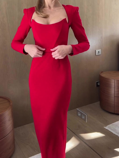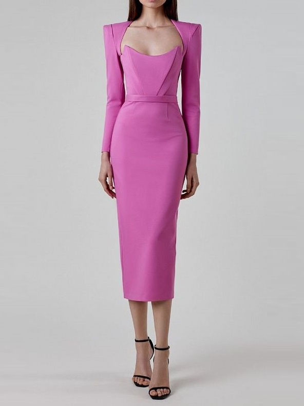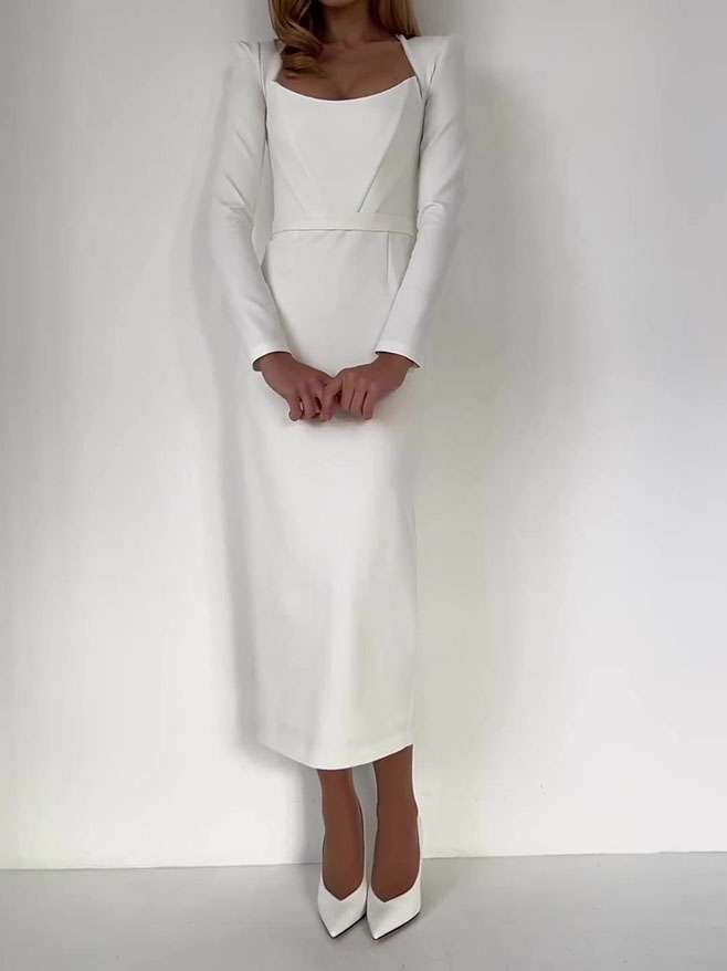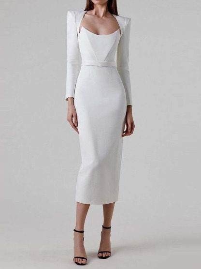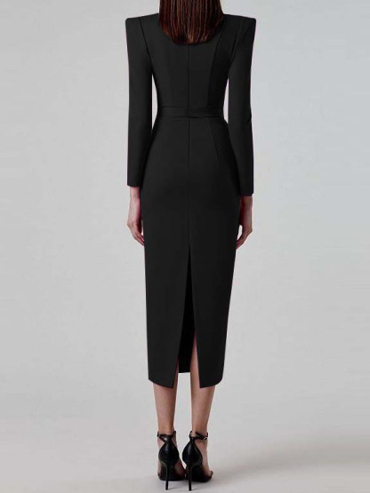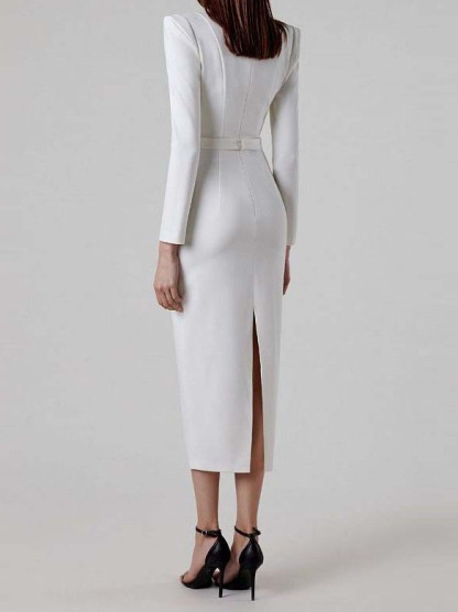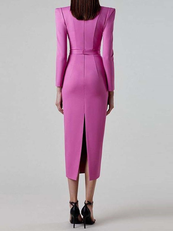 Horn Long Sleeve Belted Dress