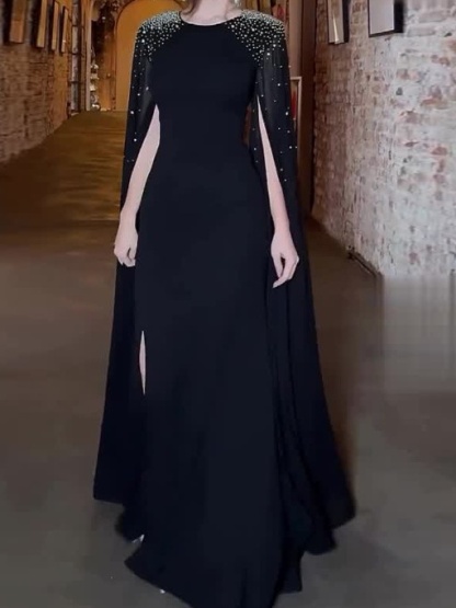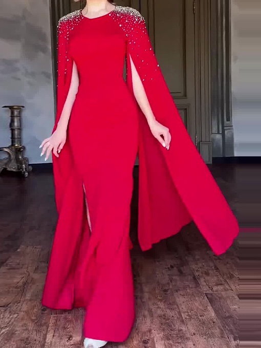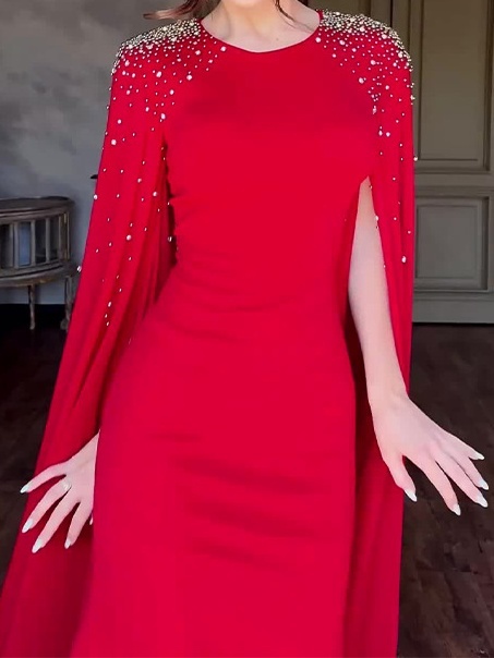 Balls/Grand Galas: For events like large-scale balls and anniversary celebrations, the dress's slim fit accentuates the figure, while the cape and diamond embellishments add a unique touch, making the wearer dazzling as they dance and effortlessly projecting confidence and style.
