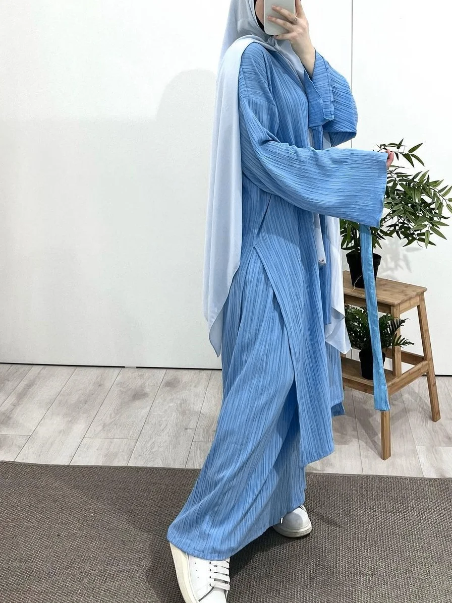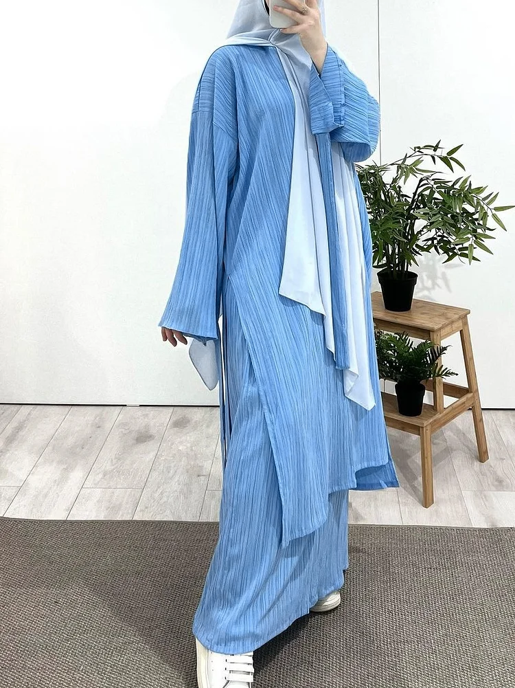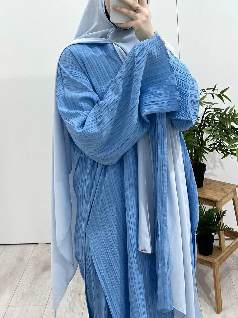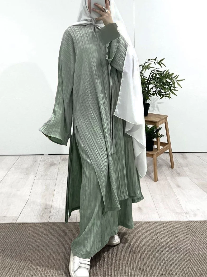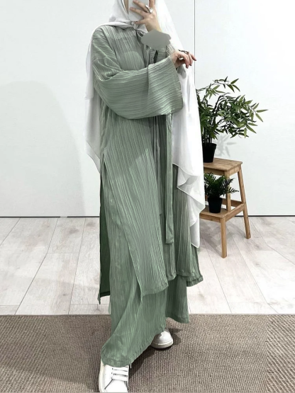 Long Sleeve Pleated Robe Dress Set