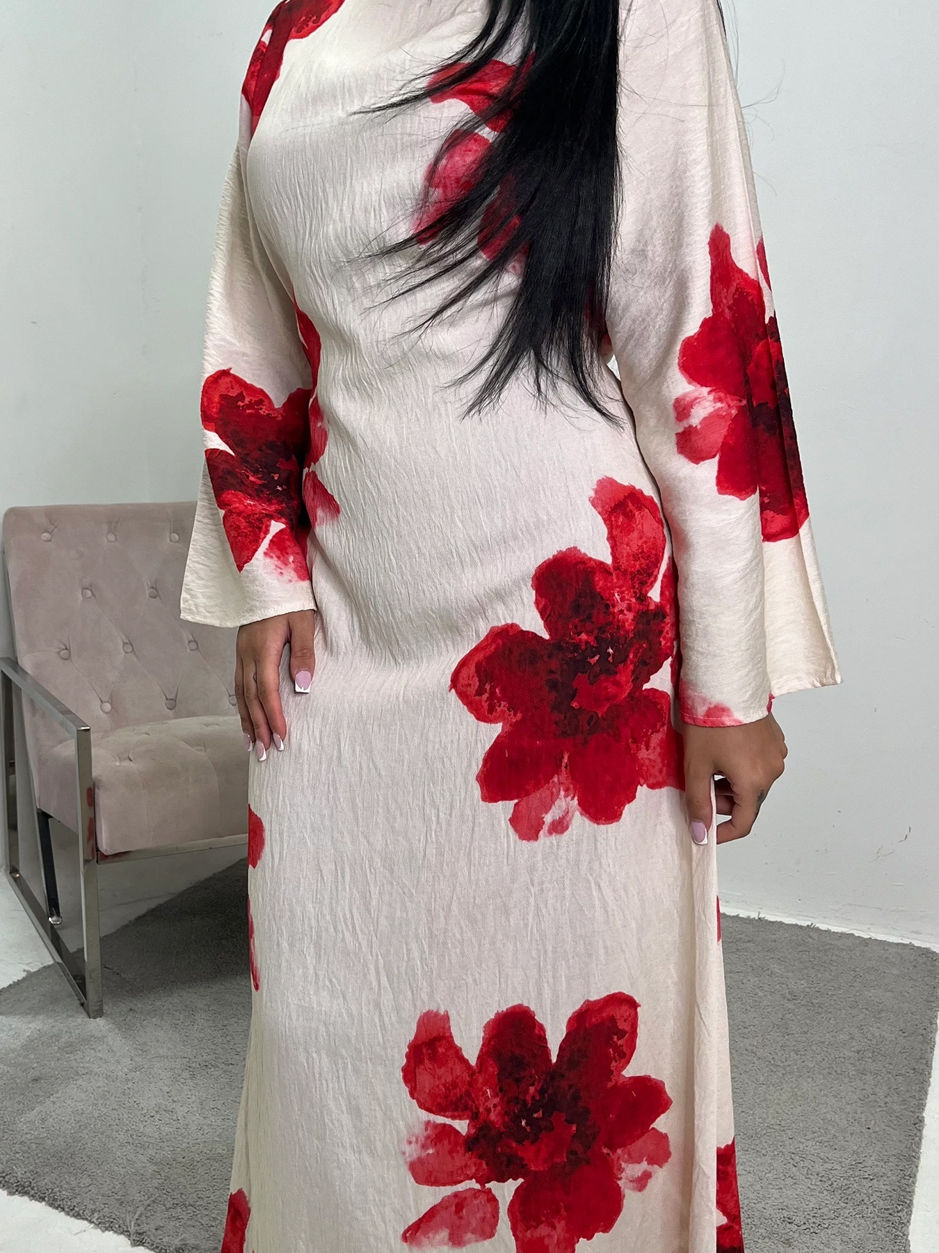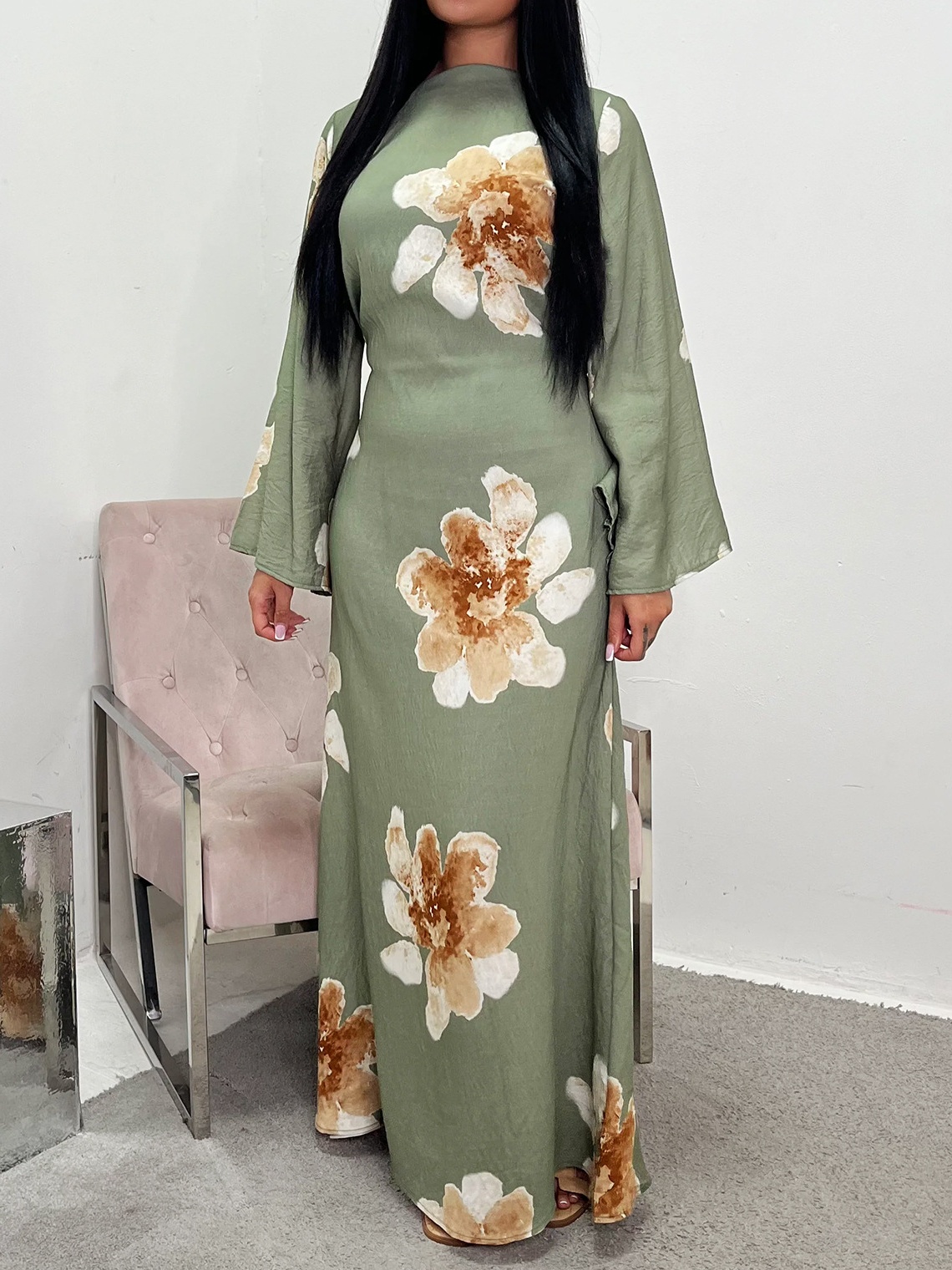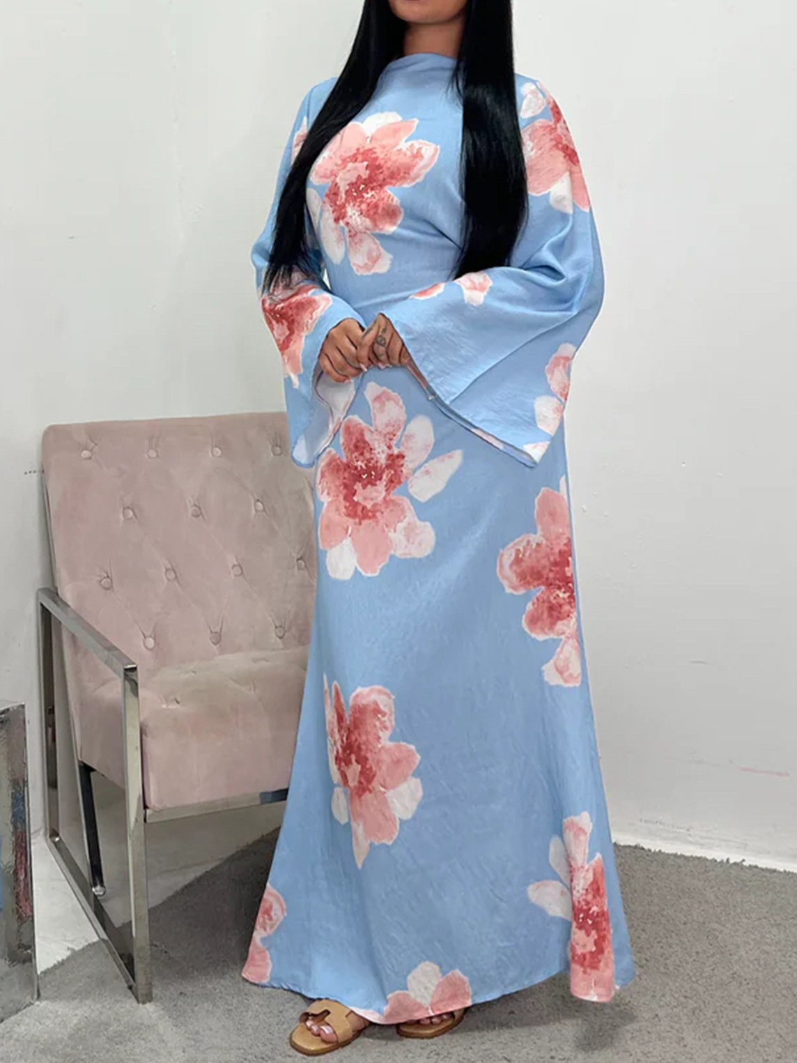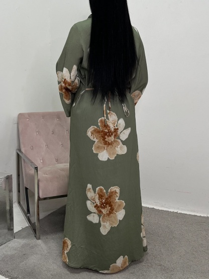 Loose Sleeve Waist Printed Dress