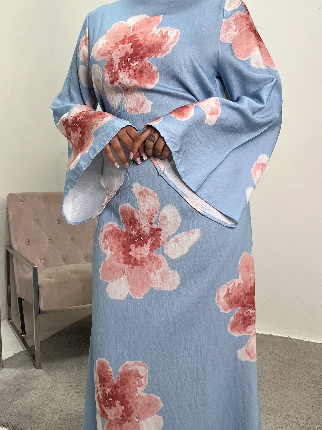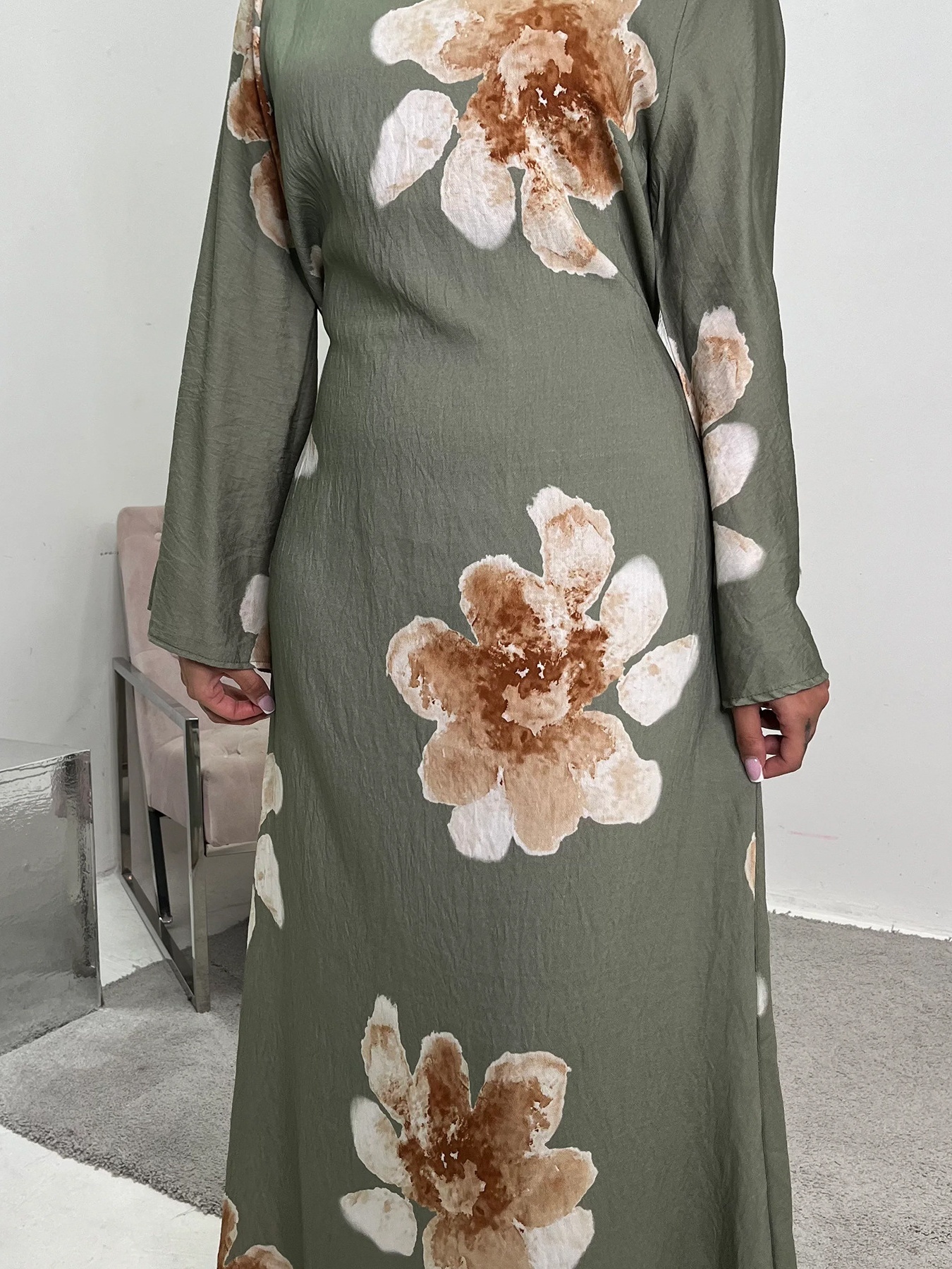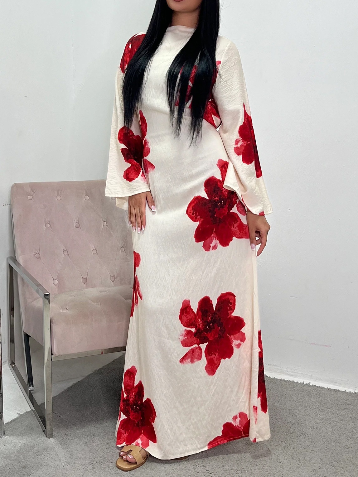 Loose Sleeve Waist Printed Dress