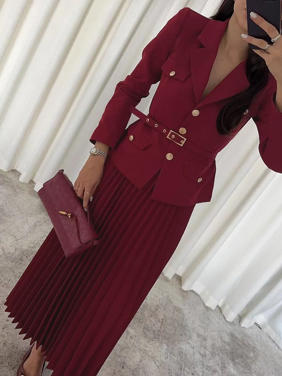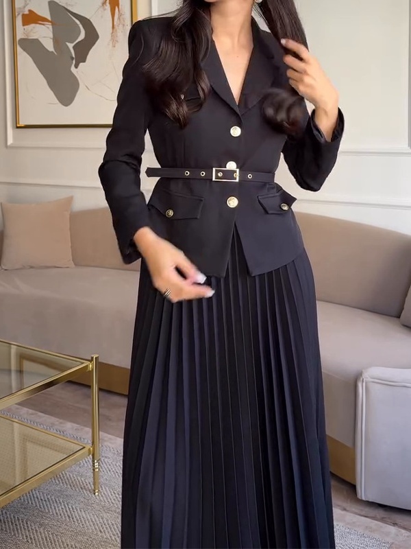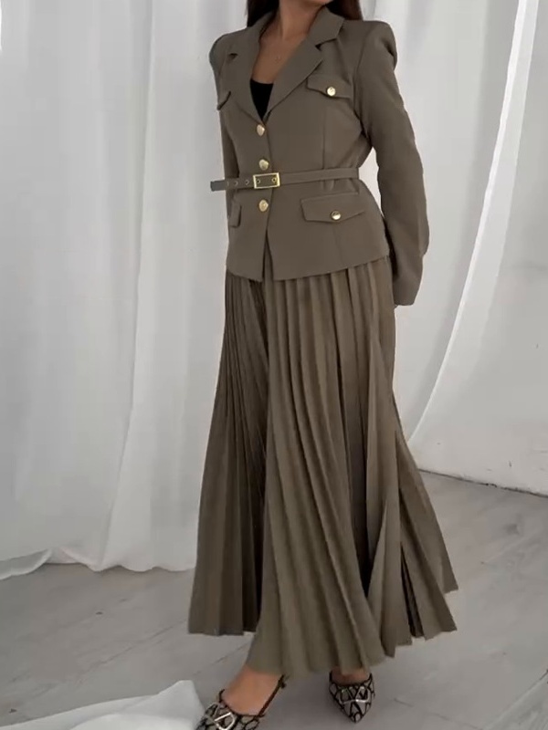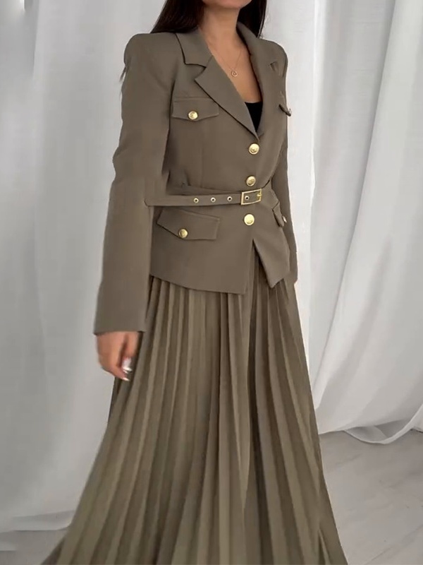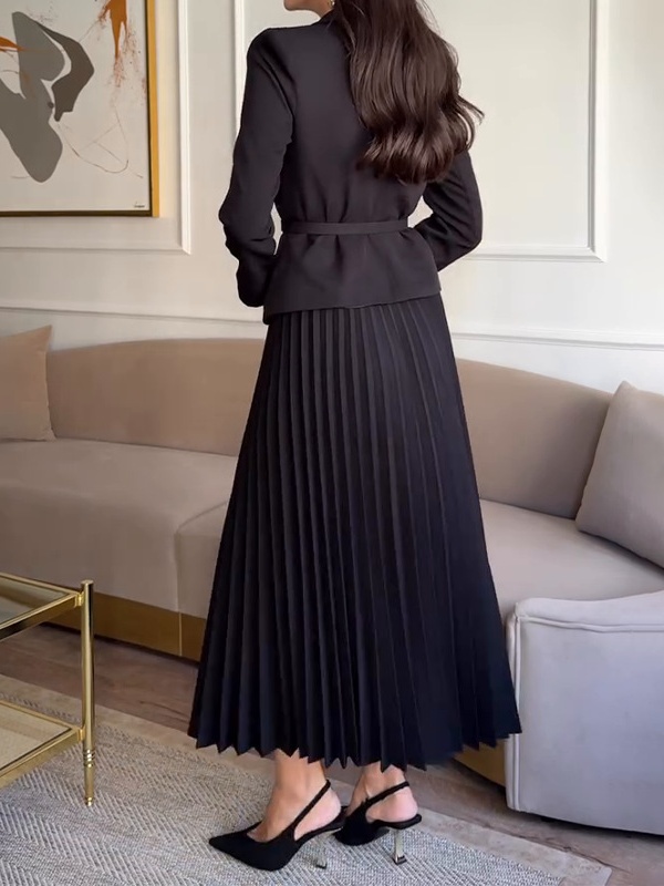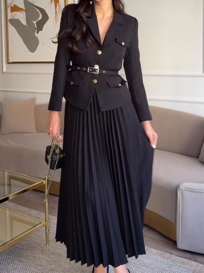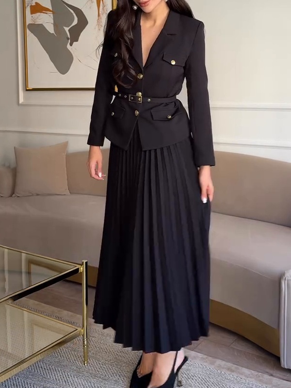 Solid Color Temperament Lapel Suit Jacket Pleated Set