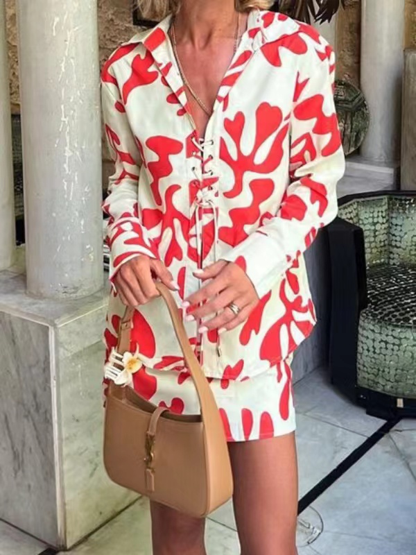 Original Corals Print Shirt and Short Skirt Set