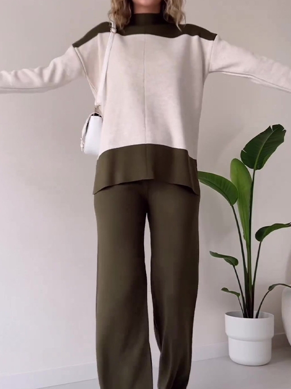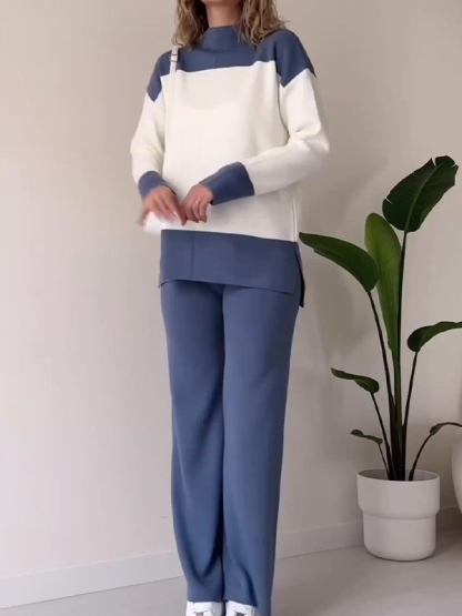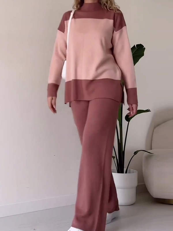 Patchwork Color Wide-leg Pants Sets