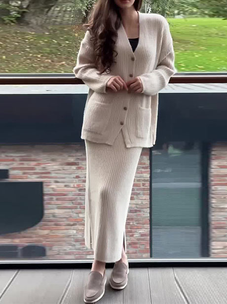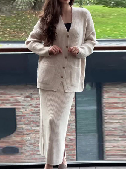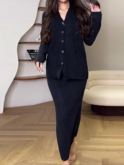 Retro Casual Long Skirt Women Set