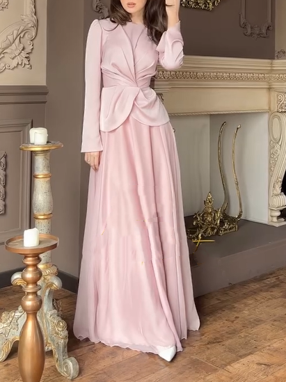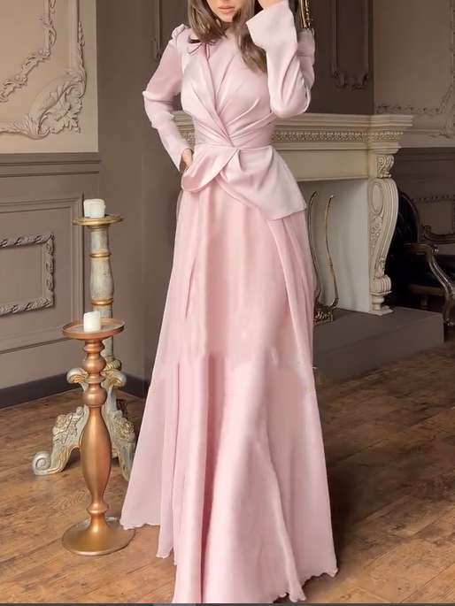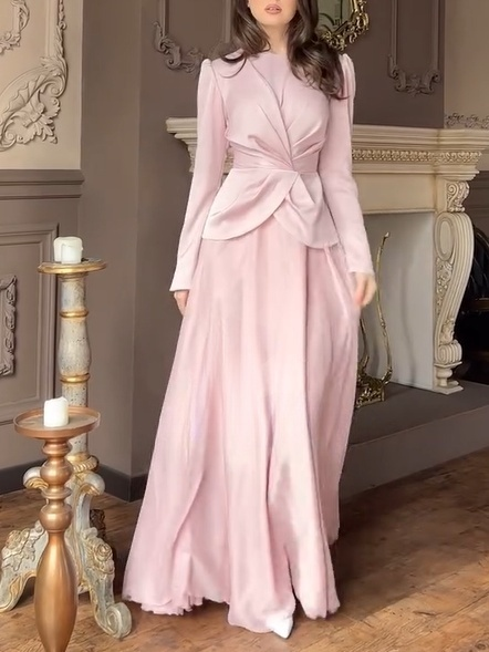 Details: The long sleeves fit snugly around the arms, with delicate cuffs. The overall cut is sharp and streamlined, showcasing a simple yet sophisticated design. The exquisite craftsmanship highlights the dress's quality in the details.