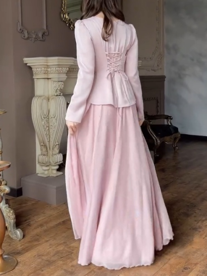 Business Events: For more formal events like business dinners and annual meetings, the suit-like design of the top conveys a professional and sophisticated look, while the full skirt adds a touch of feminine softness and romance, showcasing the wearer's unique charm in business settings.