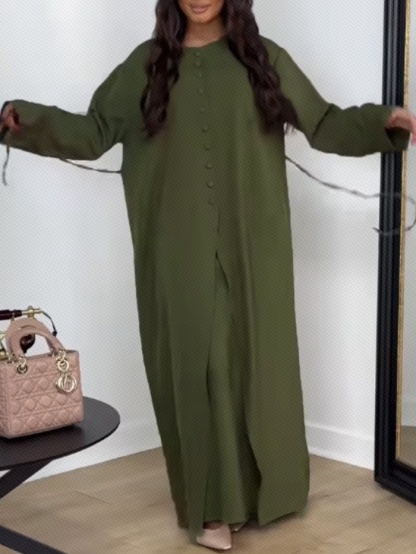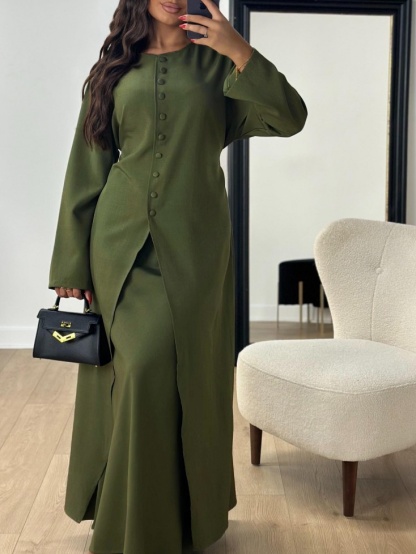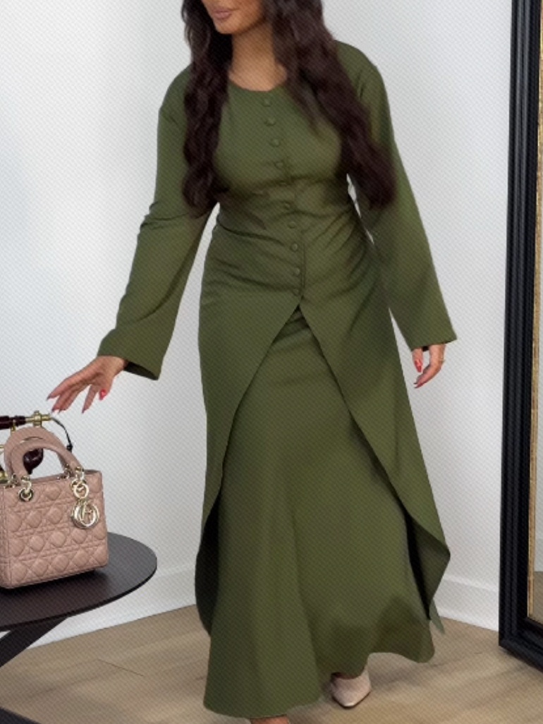 Satin Button Two-Piece Evening Dress Set