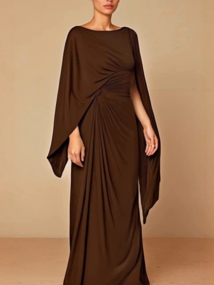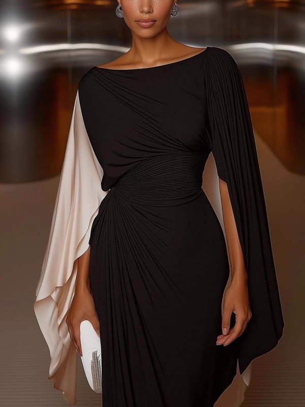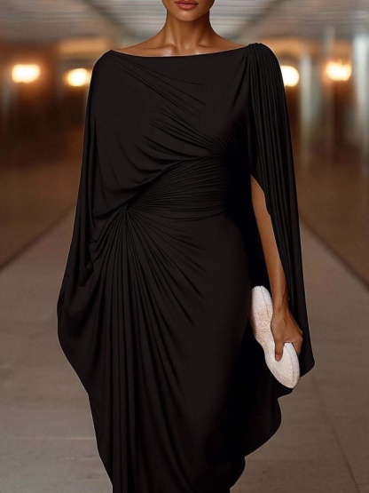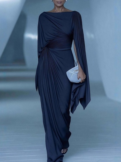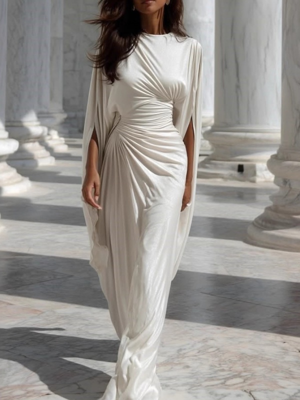 Solid-Color Cinched Waist Satin Slit Dress