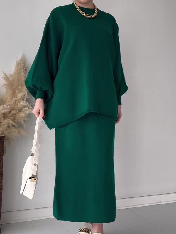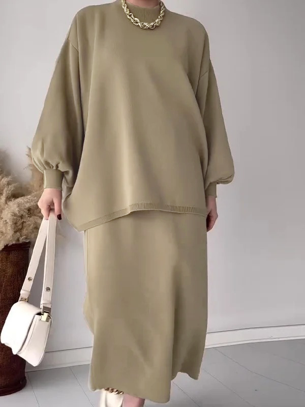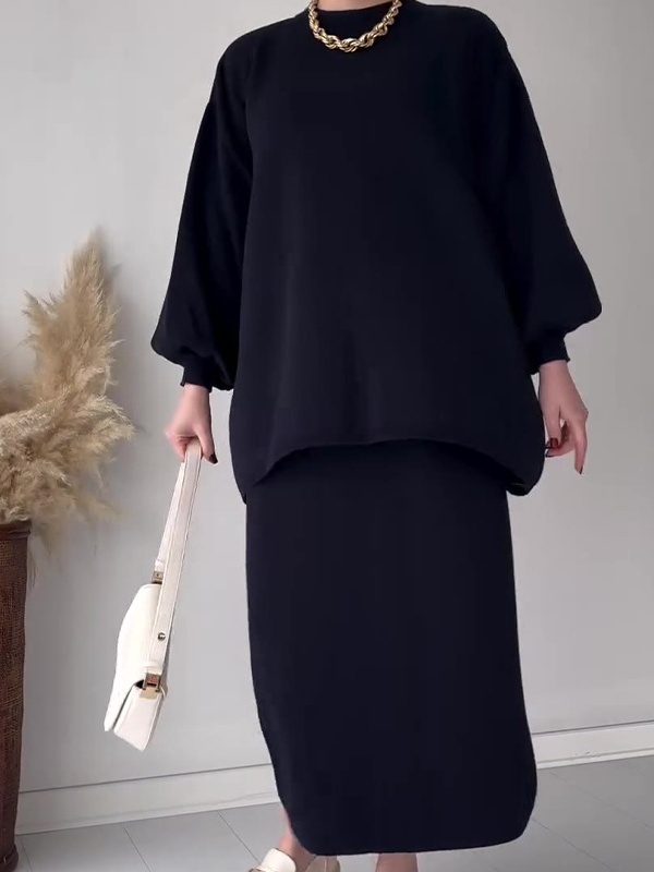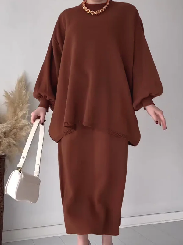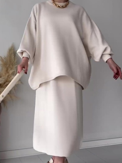 Solid Color Loose Versatile Top Lazy Dress Set