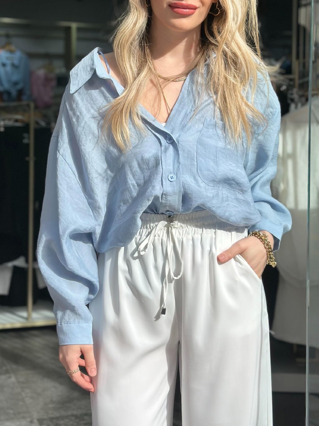 Solid Color Silk Loose Blouse