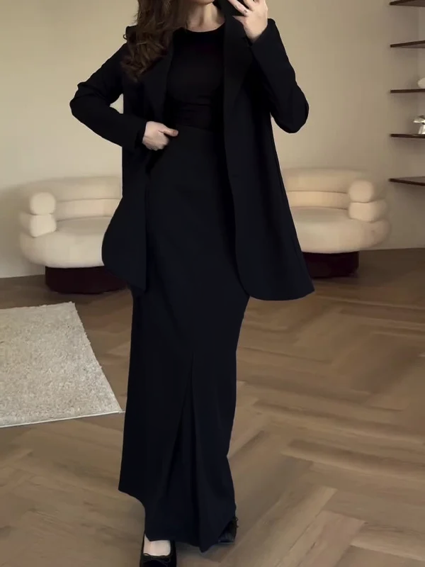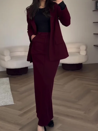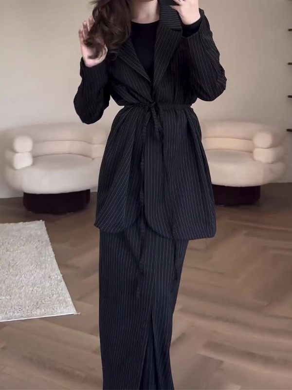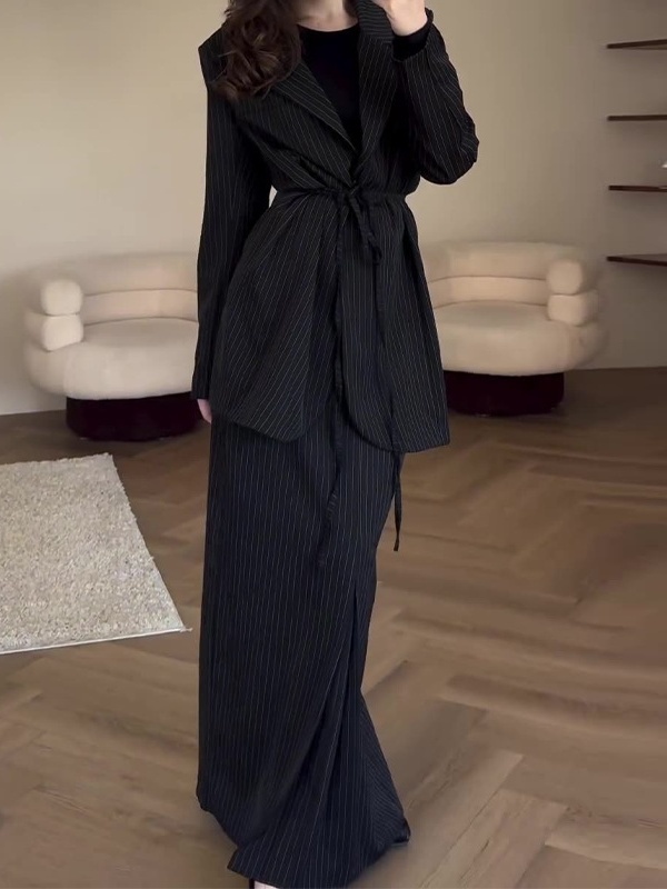 Solid color Tie Waist Suit Skirt Temperament Commuter Set