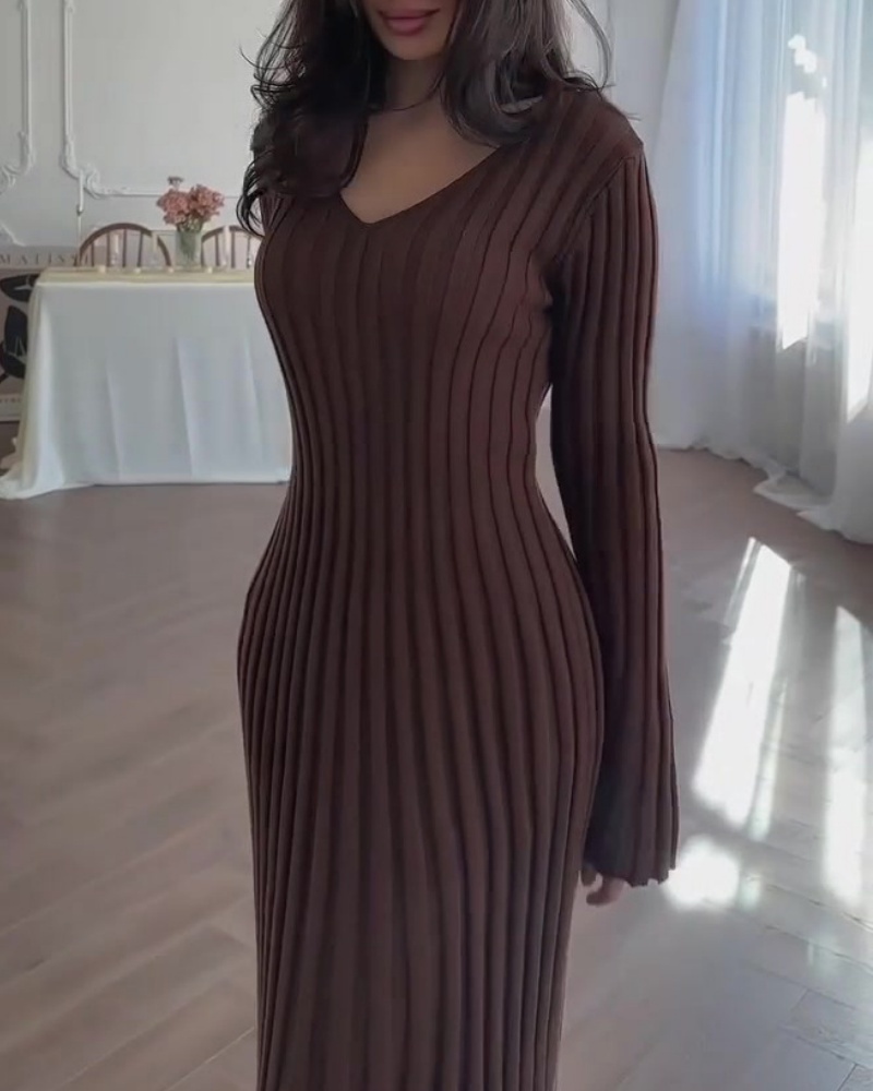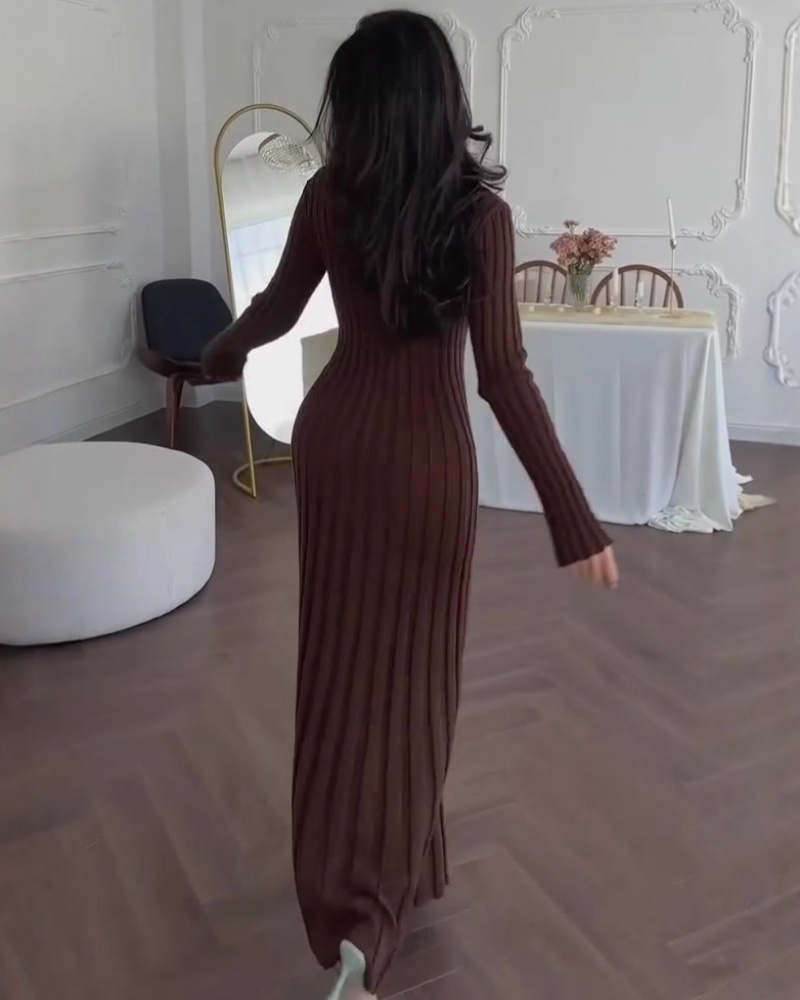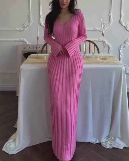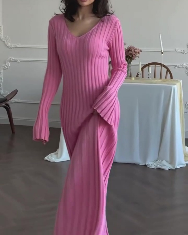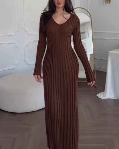 Solid-Color Woven Striped Dress
