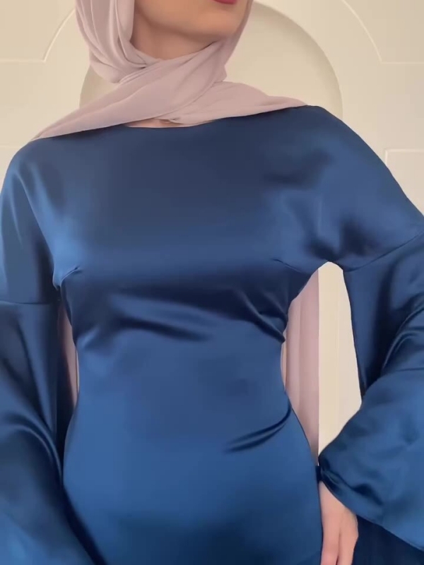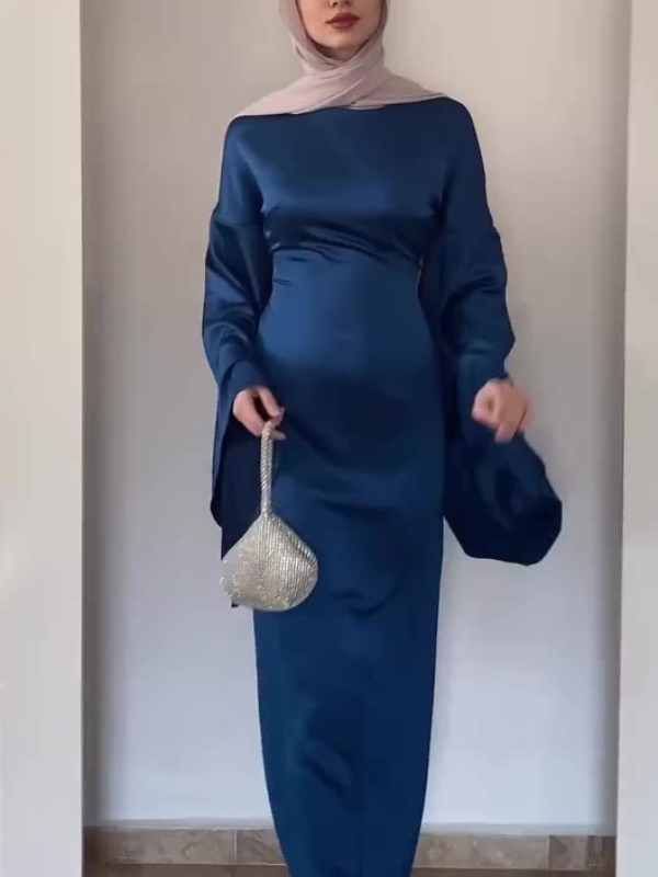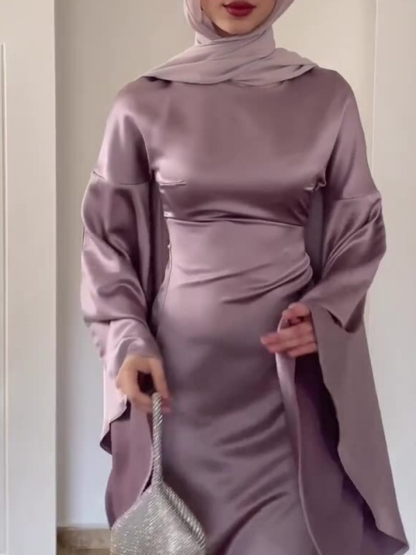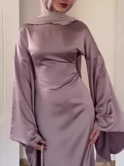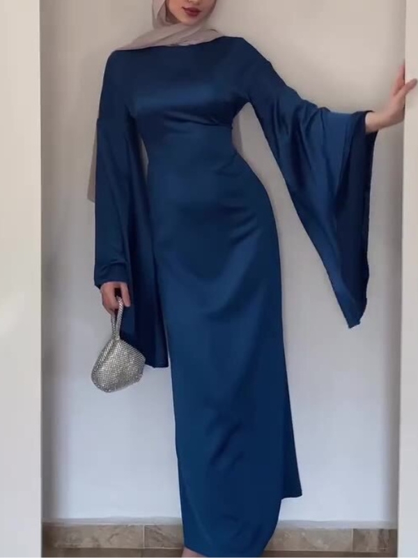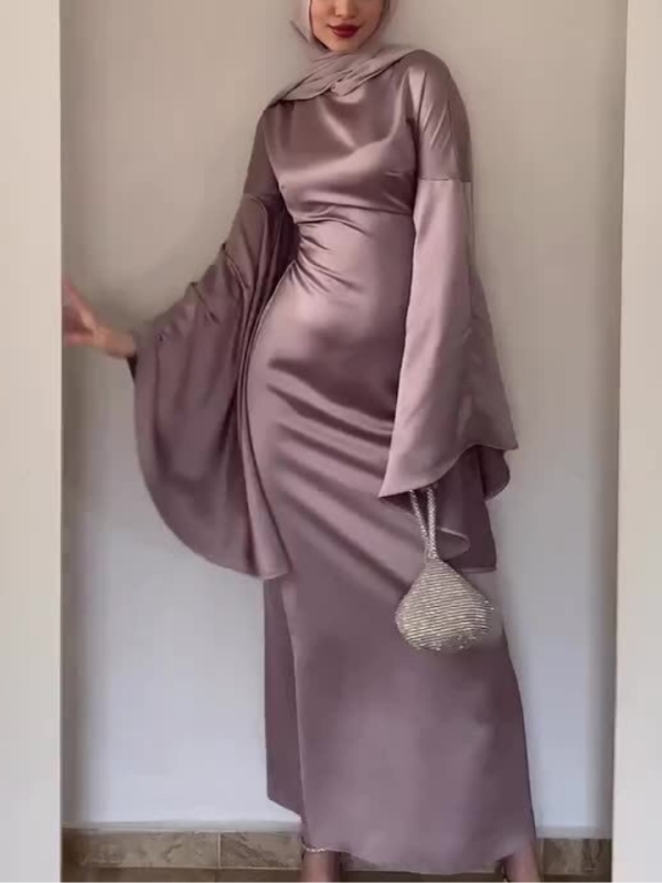 Temperament Solid Color Fared Sleeve Waist Maxi Dress-Clearance