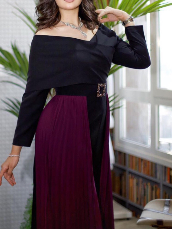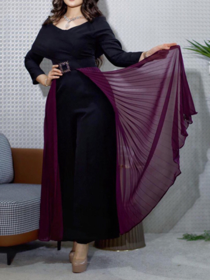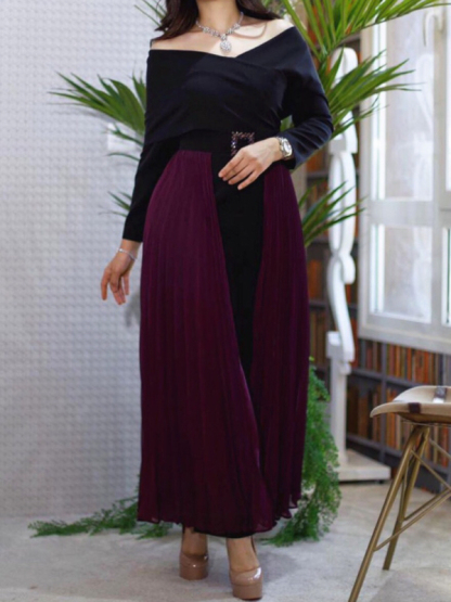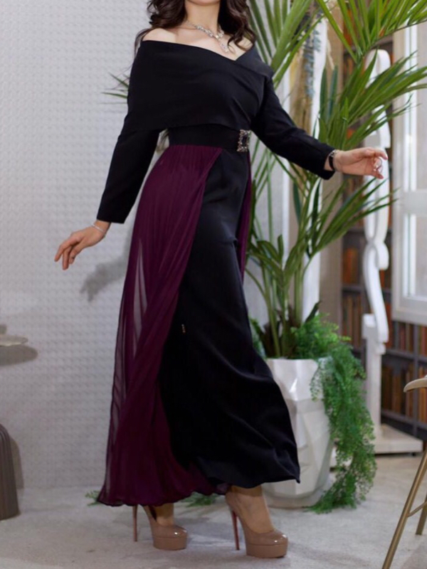 V-neck Chiffon Patchwork Waist Maxi Dress