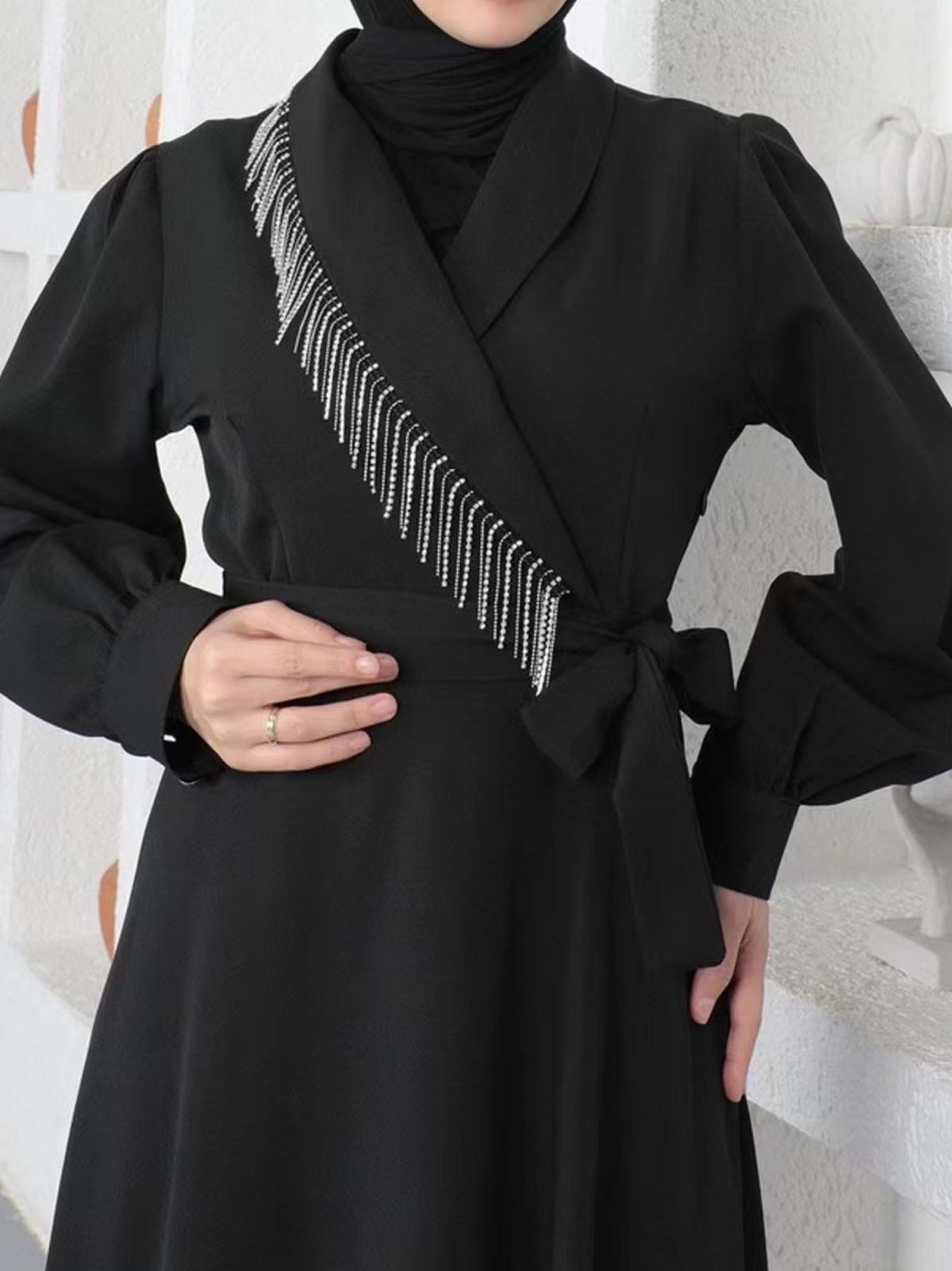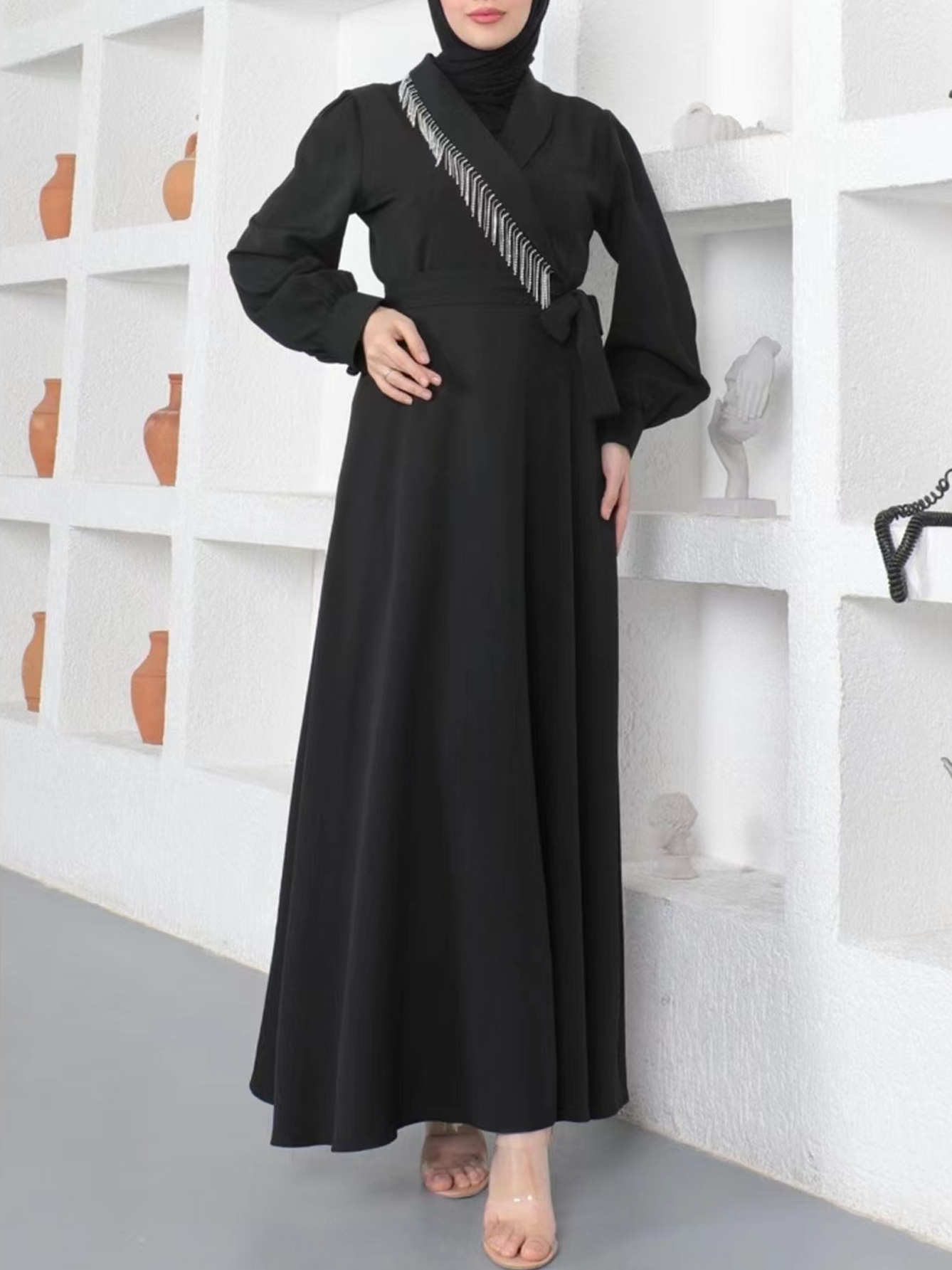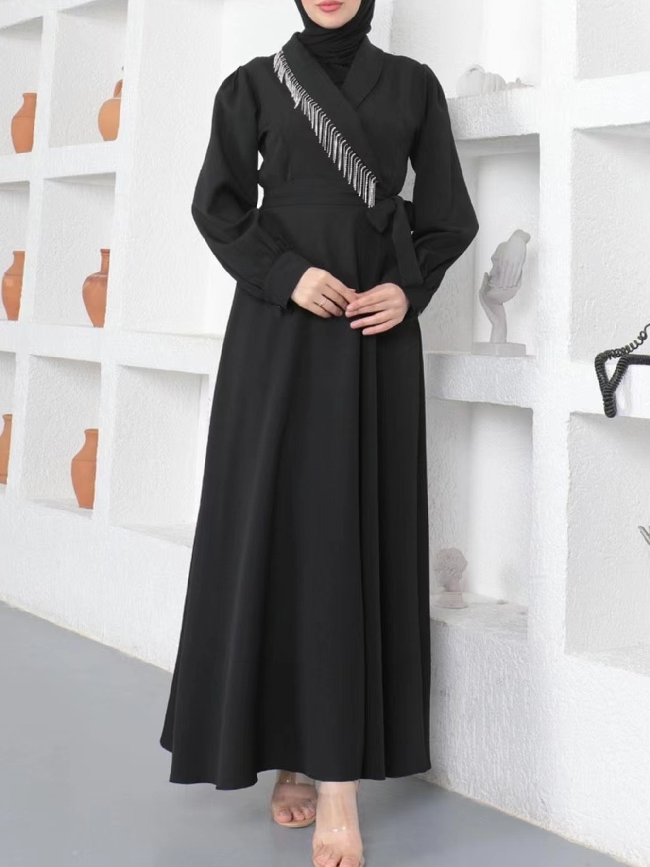 V- Neck Fashion Casual Solid Color Drill Chain Maxi Dress