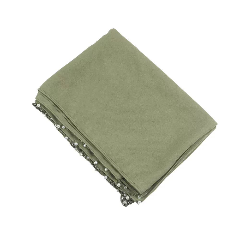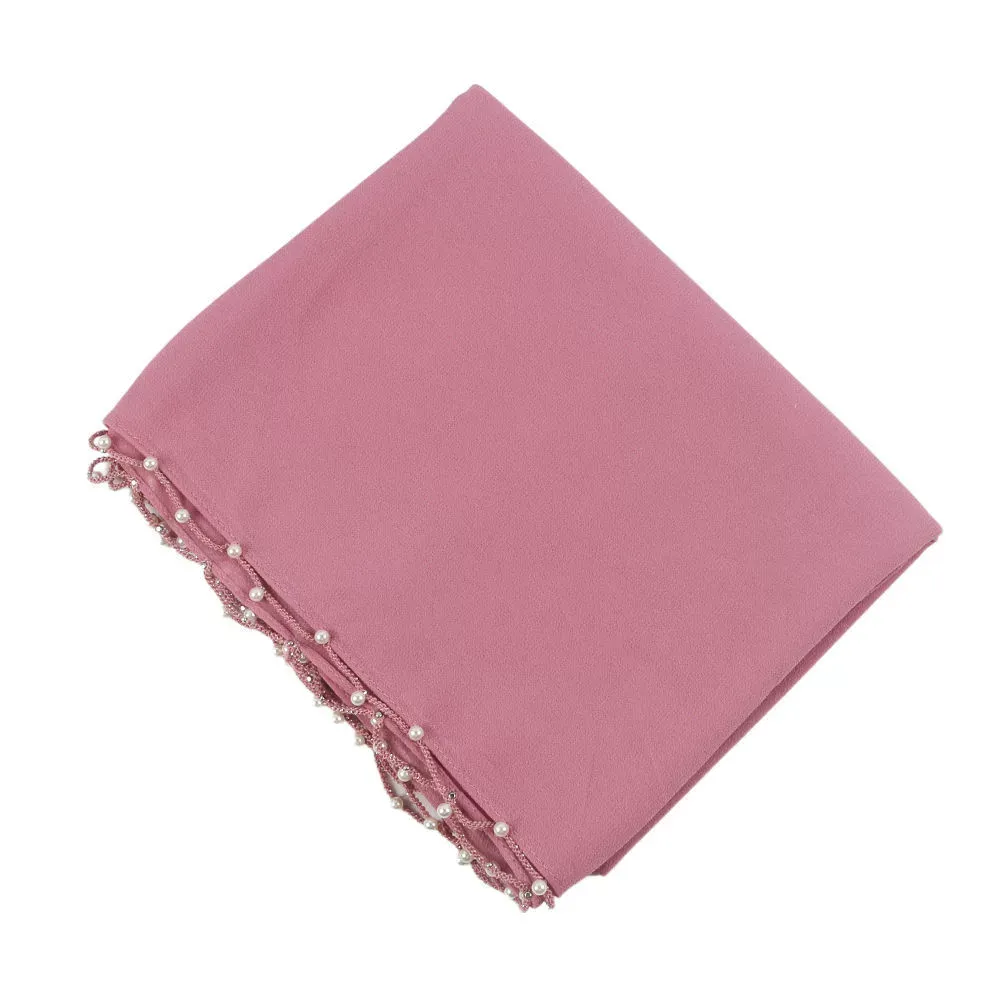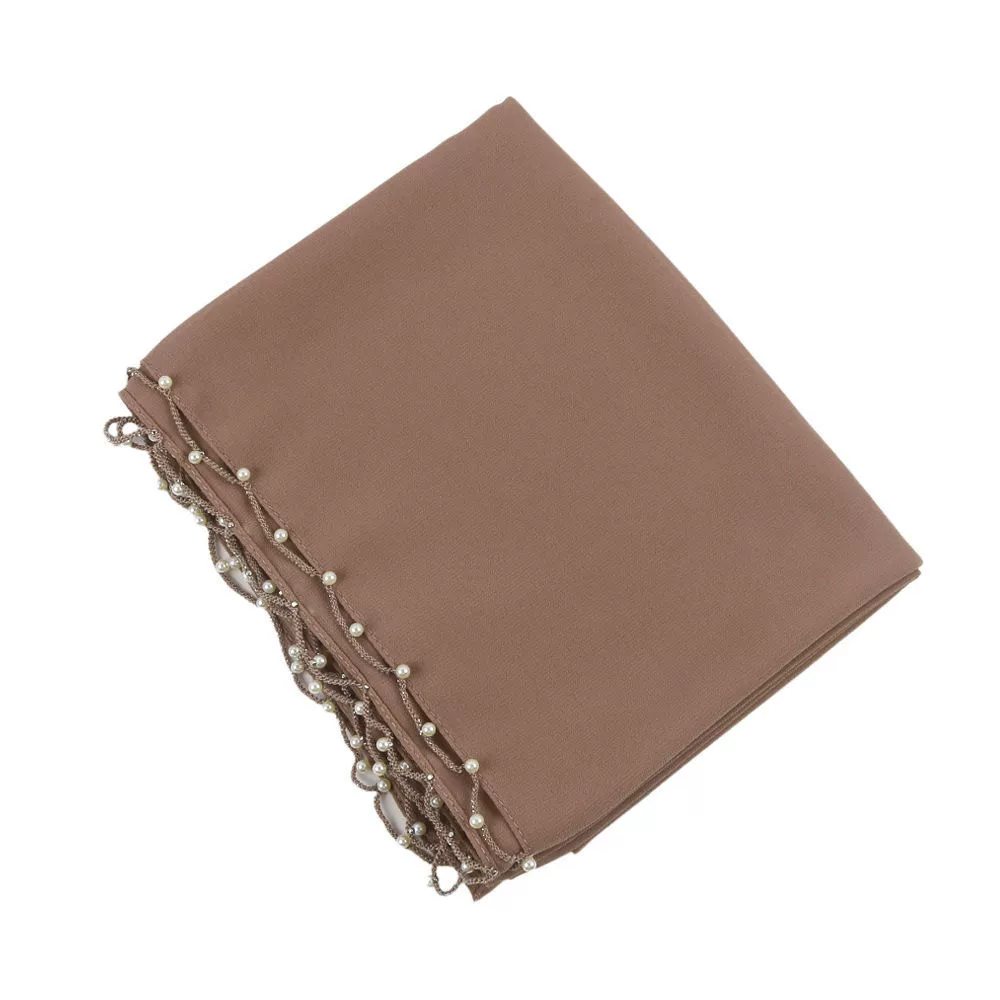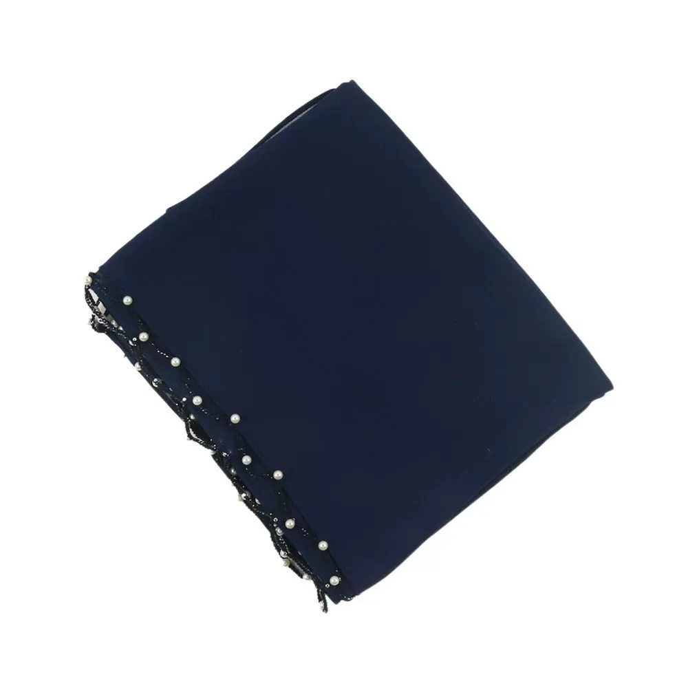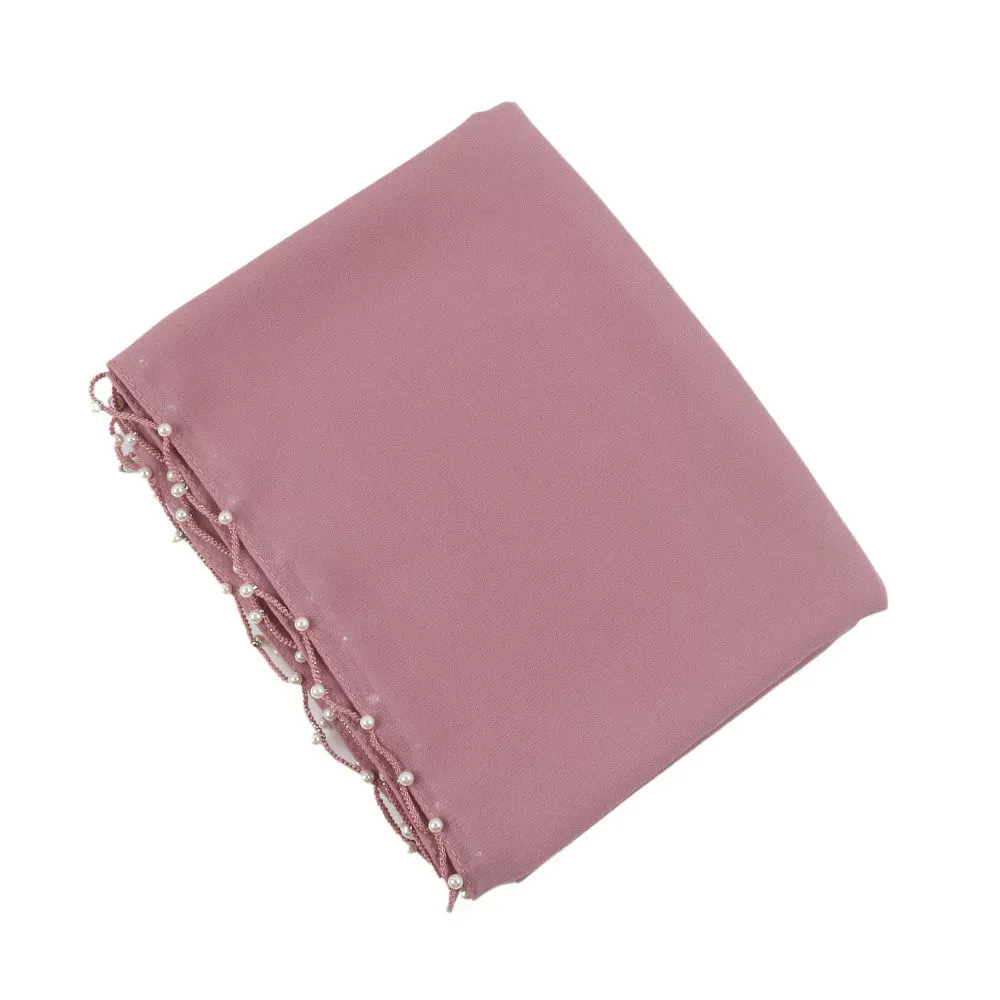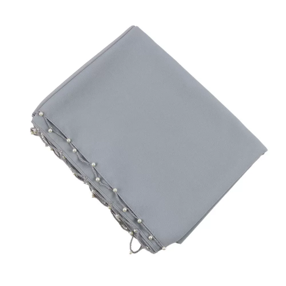 Wavy Edge Beaded Solid Color Pearl Scarf