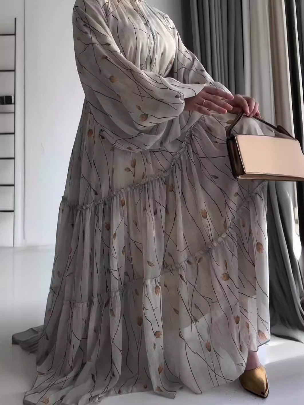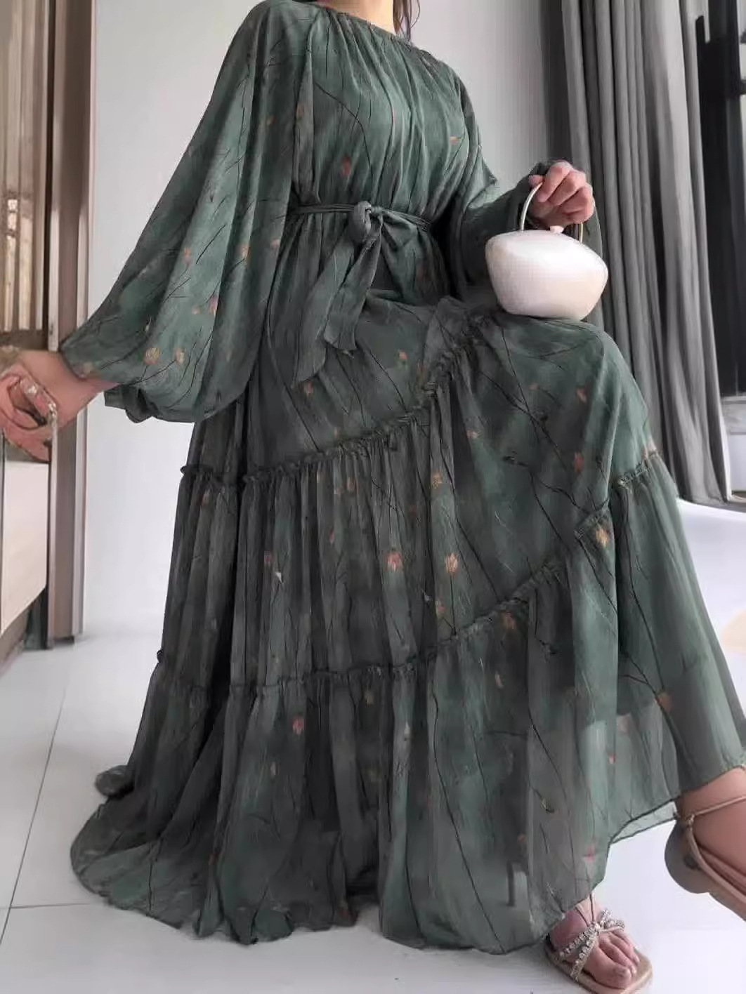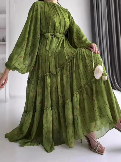 Bohemian Printed Lantern Sleeves Maxi Dress-Clearance