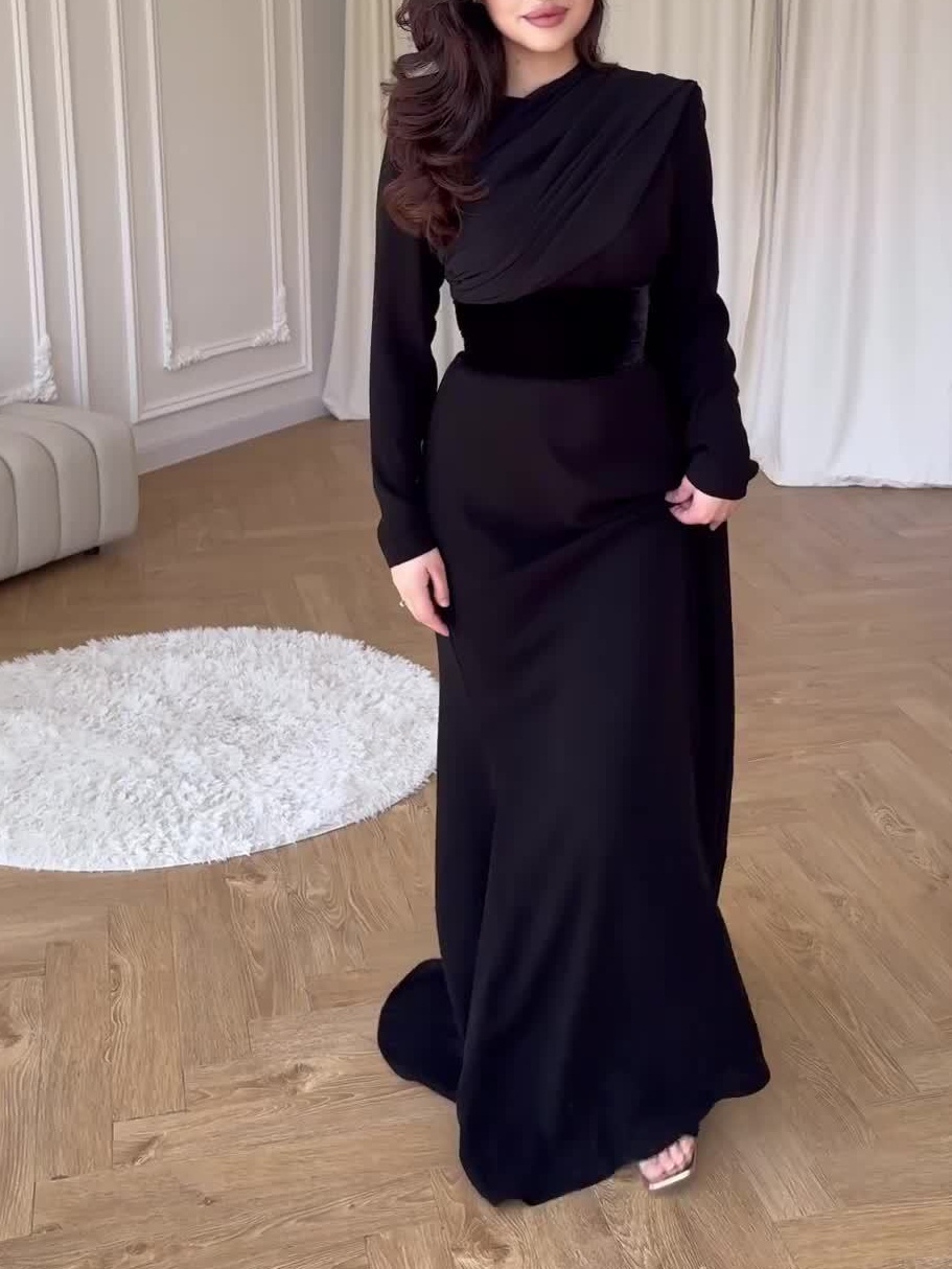 Fashionable Splicing Velvet Shawl Palace Style Dress